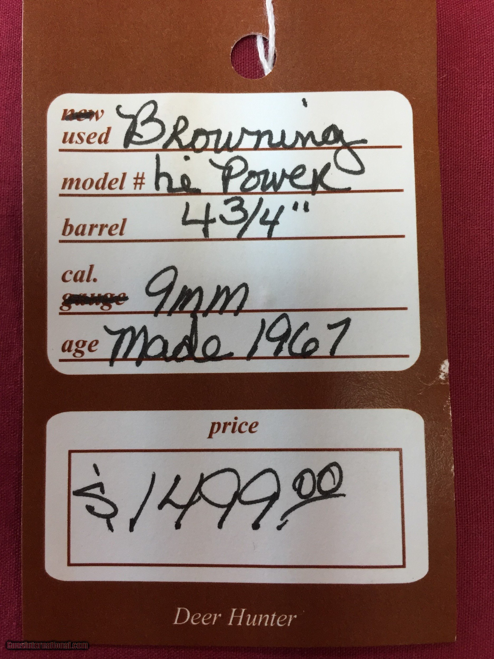 Description: SOLD FOR SALE Browning Hi Power, T model, Ring hammer,14 shot, 9 mm, 4.75" barrel, Small scratch end of barrel Beautiful Bore, Excellent Condition Made in Belgium, Circa 1967 We accept VISA,M/C,DISCOVER Shipping to lower 48 is $30.00 US PRIORITY MAIL SOLD |