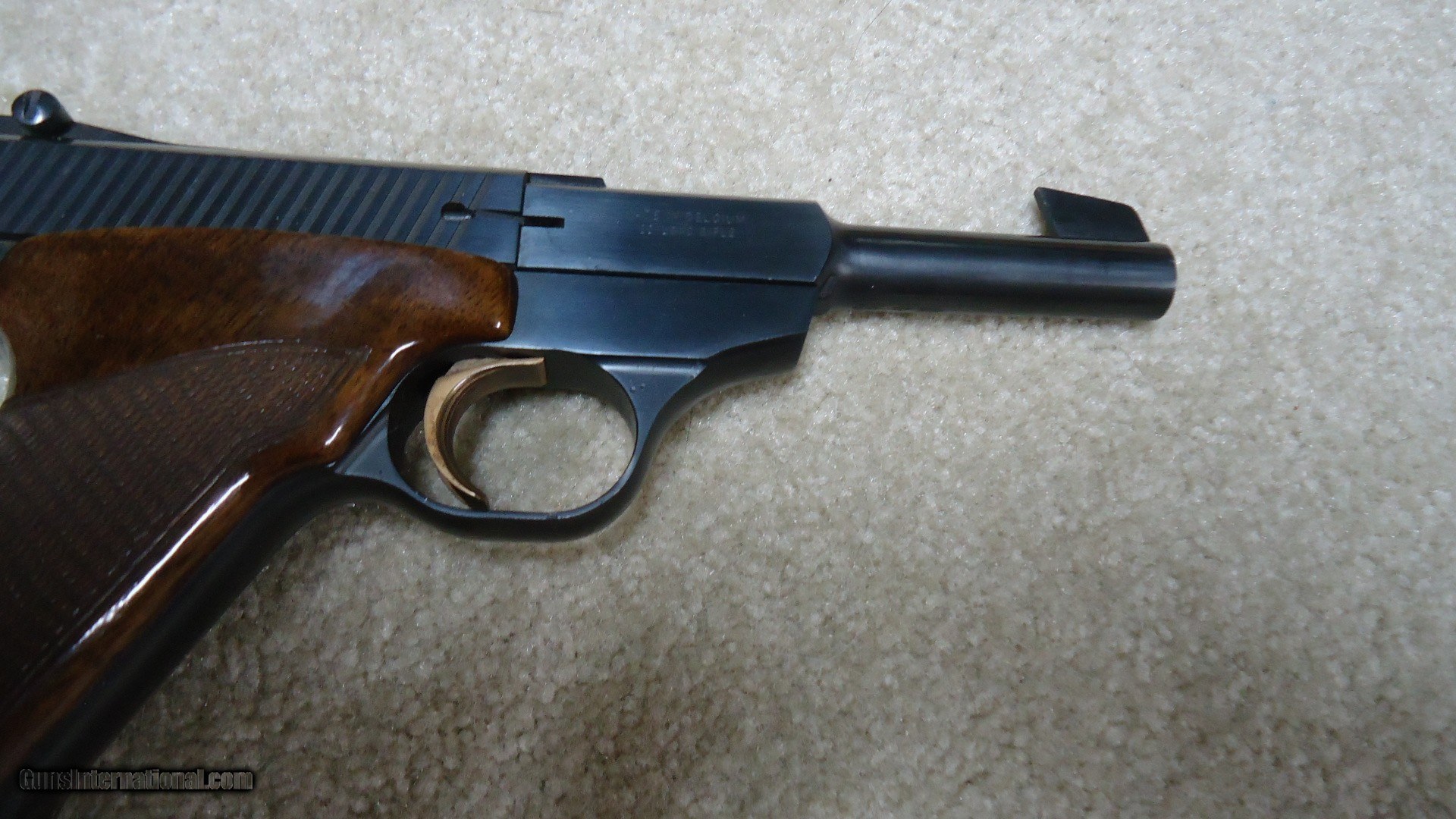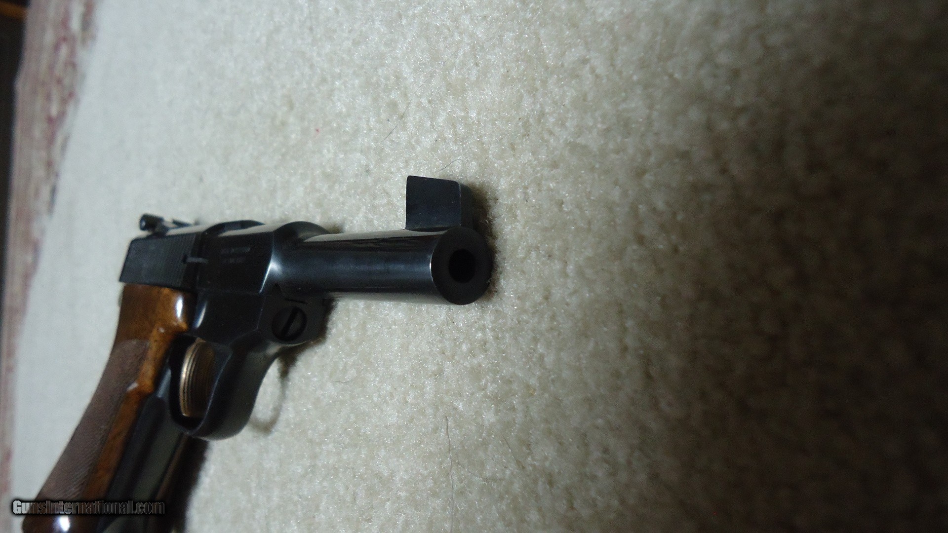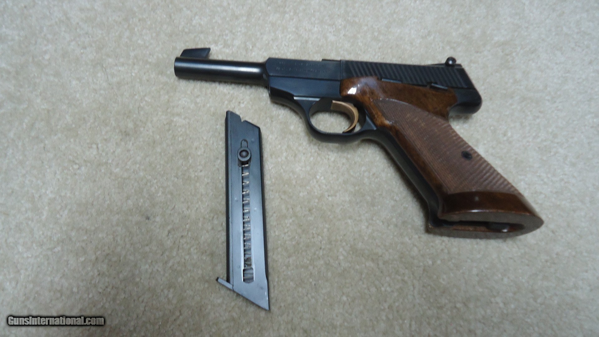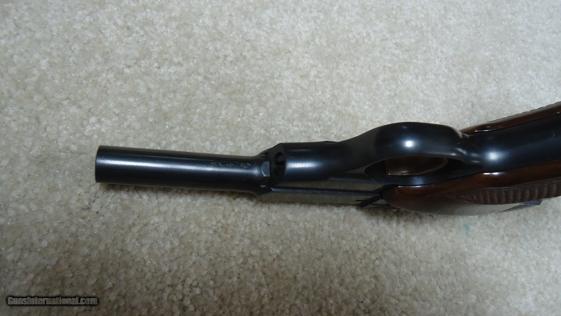 Description: BELGIAN BROWNING CHALLENGER .22 LR AUTO PISTOL, #36XXXU4, MADE 1964. These were made from 1962 to about 1974. All solid steel and walnut, this one has the 4 1/2" barrel. Superb Belgian Browning quality from the 1960s. This one has seen very limited to no real usage. It retains about all the blue, has a bright bore and sharp checkered wrap-around walnut grips and all showing minimal handling. Fully adjustable rear sight, original Browning marked 10 round magazine. These simply have a wonderfully solid feel and shot exceptionally well. SOLD Curio/Relic: Yes Handgun Caliber: .22 Long Rifle Manufacturer: BROWNING Model: CHALLENGER Serial Number: 36XXXU4 Barrel Length: 4 1/2 Condition: EXCELLENT Bore Condition: EXCELLENT |