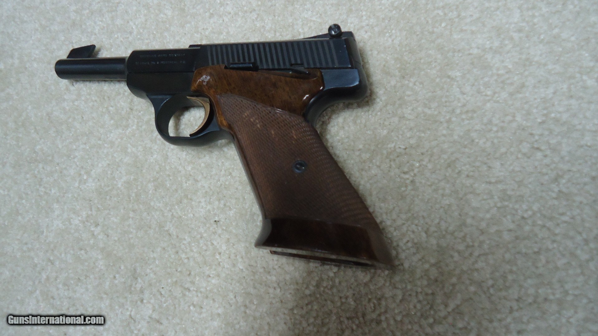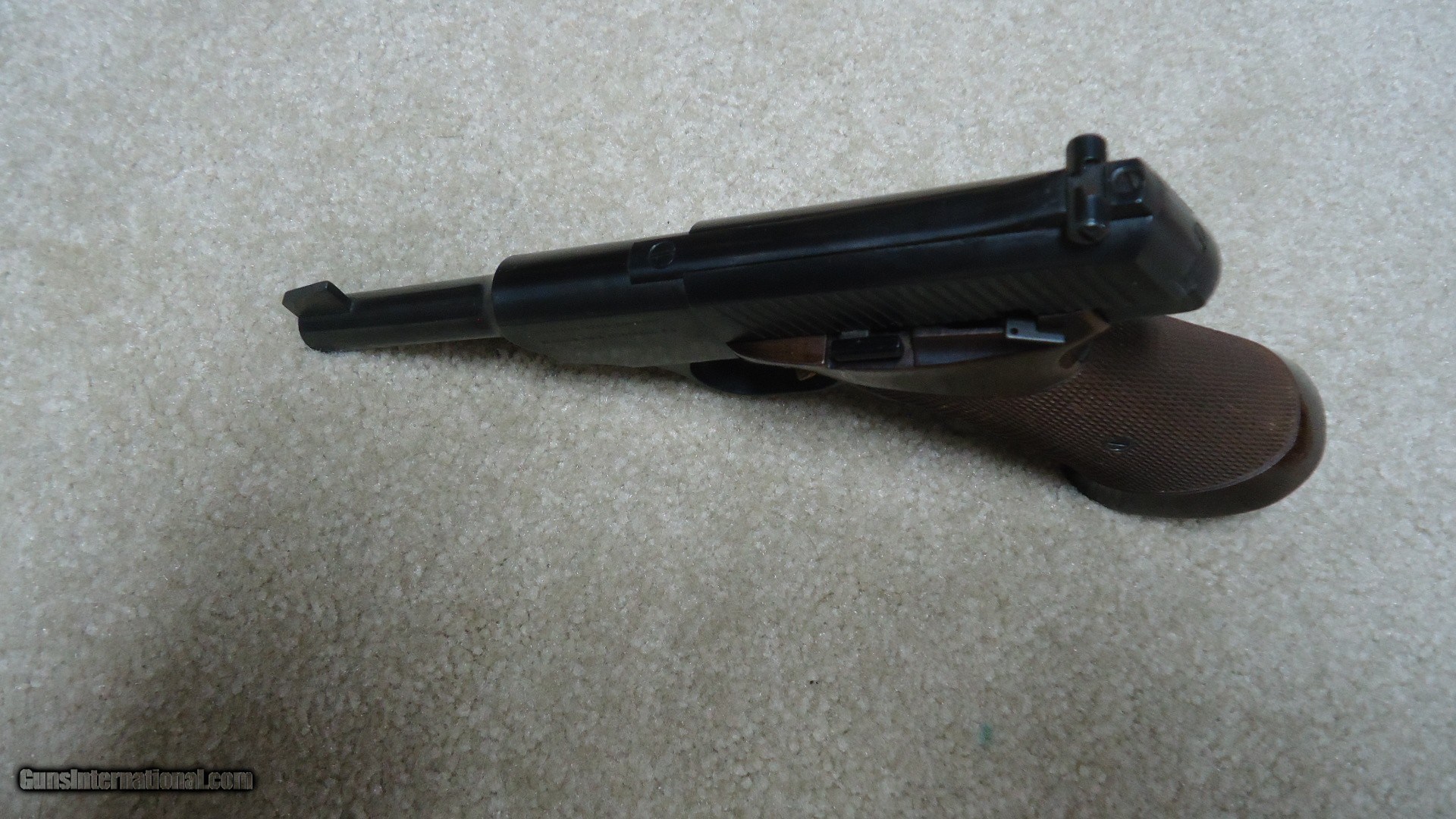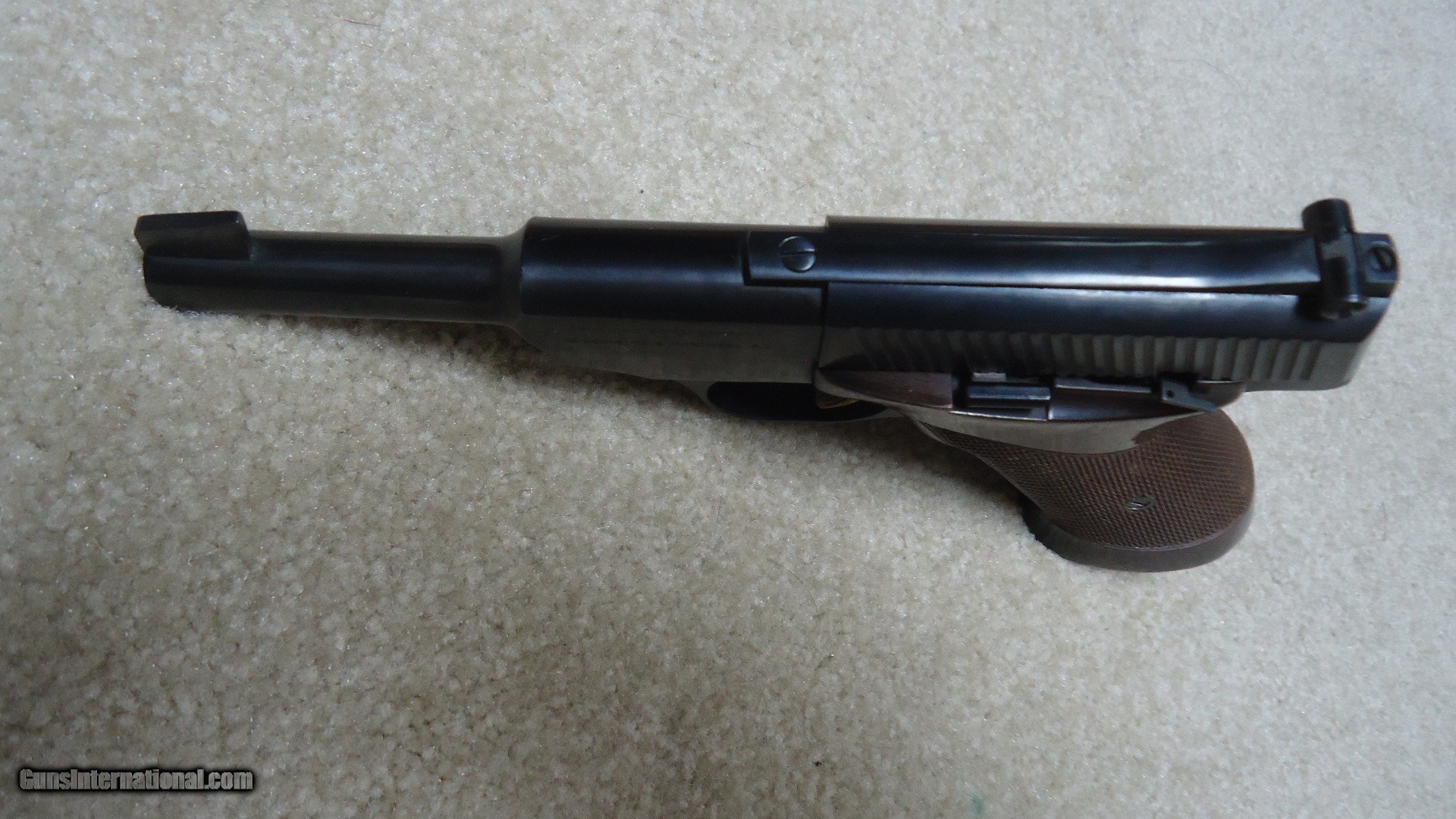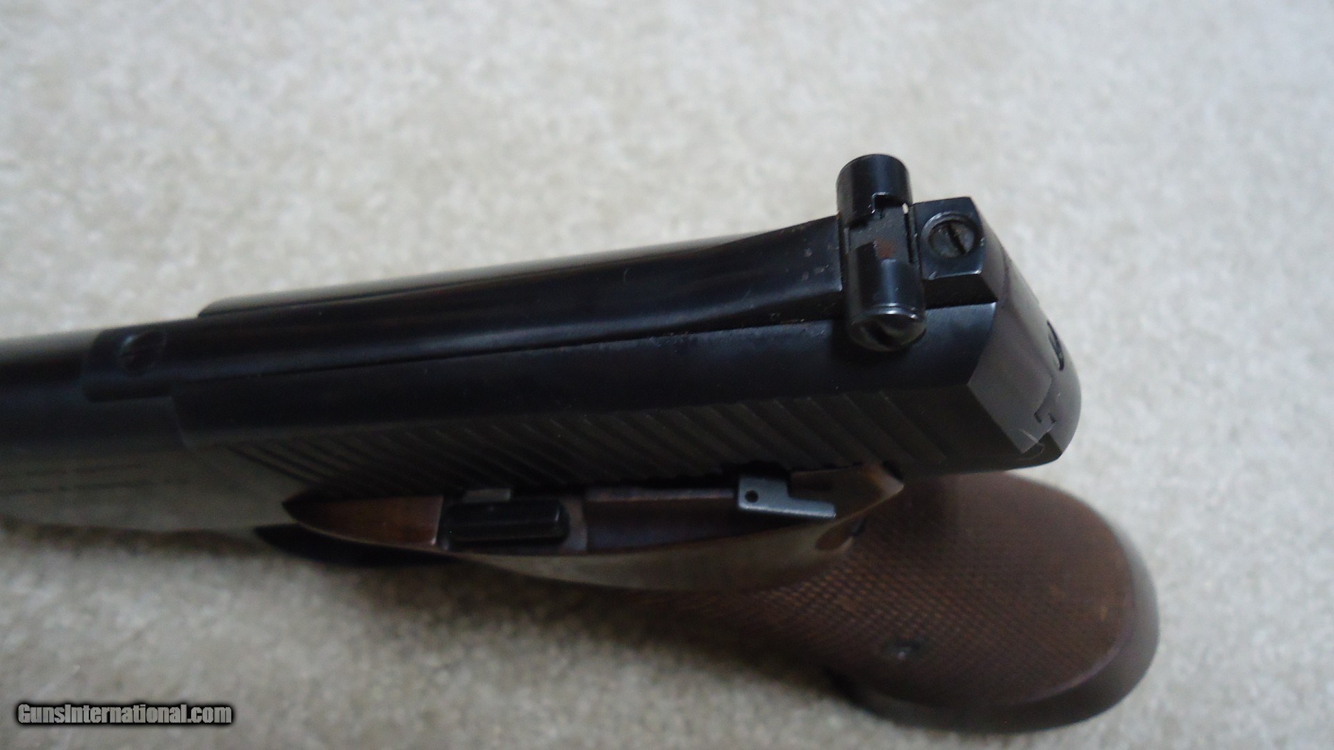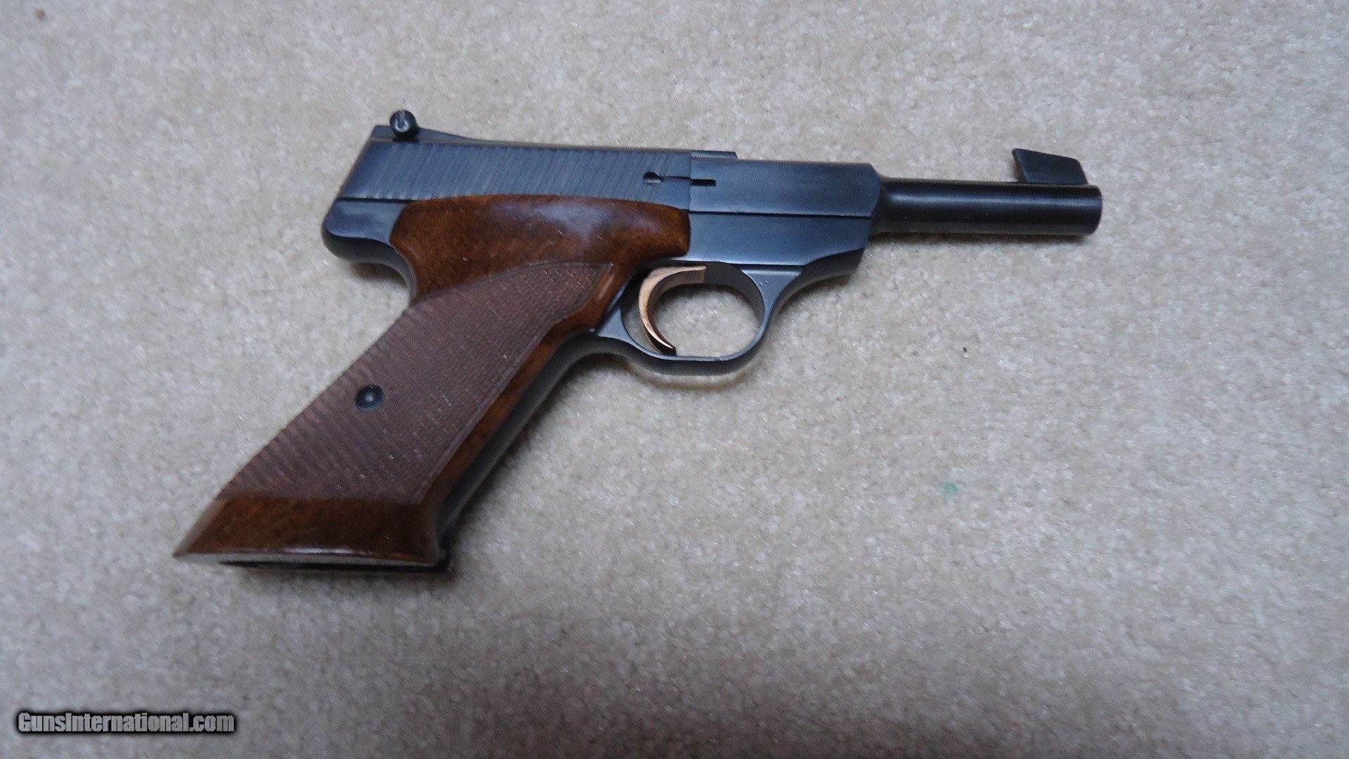 Description: BELGIAN BROWNING CHALLENGER .22 LR AUTO PISTOL, #36XXXU4, MADE 1964. These were made from 1962 to about 1974. All solid steel and walnut, this one has the 4 1/2" barrel. Superb Belgian Browning quality from the 1960s. This one has seen very limited to no real usage. It retains about all the blue, has a bright bore and sharp checkered wrap-around walnut grips and all showing minimal handling. Fully adjustable rear sight, original Browning marked 10 round magazine. These simply have a wonderfully solid feel and shot exceptionally well. SOLD Curio/Relic: Yes Handgun Caliber: .22 Long Rifle Manufacturer: BROWNING Model: CHALLENGER Serial Number: 36XXXU4 Barrel Length: 4 1/2 Condition: EXCELLENT Bore Condition: EXCELLENT |