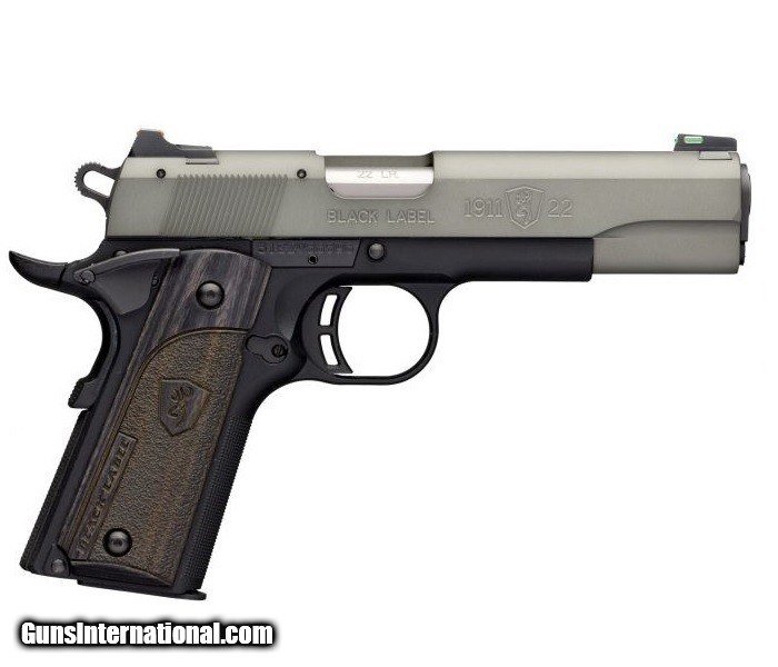 Description: BRAND NEW IN THE BOX AND READY TO SHIP! BUY IT NOW!! Manufacturer: Browning Arms Co. Model: 1911-22 Black Label Full Size SKU: 051847490 Caliber: .22 LR Capacity: 10 Rounds Barrel Length: 4.25" Steel, Target Crown, Matte Finish Frame: Black Composite Slide: Aluminum, Gray Anodized Finish Grips: Black and Gray Laminate Overall Length: 7.5" Weight: 14 oz Sights: Fiber Optic - Front, Combat Fiber Optic - Rear 85% scale 1911 design, gray anodized finish, black/gray wood laminate textured grips, fiber optic sights, beavertail grip safety, extended ambidextrous frame safety