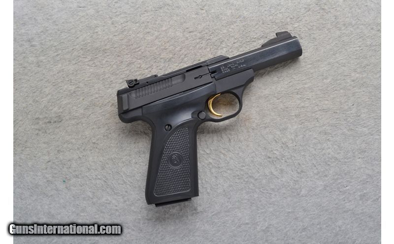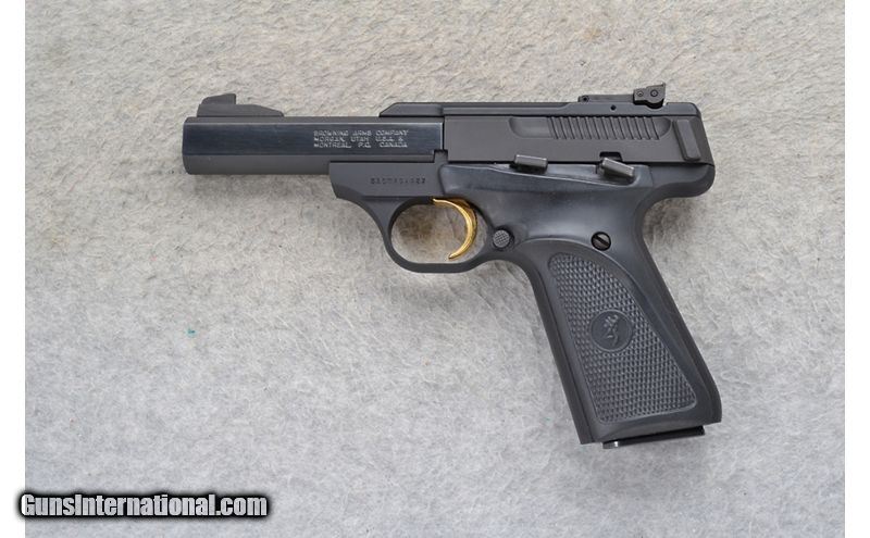 Description: This Browning Model Buck Mark is a right hand semi-auto pistol in .22 Long Rifle Cal. It has a 4 inch flat sided barrel with a rear serrated slide. A blade front sight and an adjustable notch rear sight. The grip is a checkered black rubber. It has a golden grooved trigger. .22 Long Rifle SOLD Chambers: Semi-Auto 10 round magazine. Metal Condition: Excellent. Very minor handling marks. Bore Condition: Excellent. Barrels: 4 inch barrel with a rear serrated slide. Triggers: Golden. Weight: 32 oz. Sights: Raised blade front. Adjustable notch rear. Item Location: Richfield, WI |