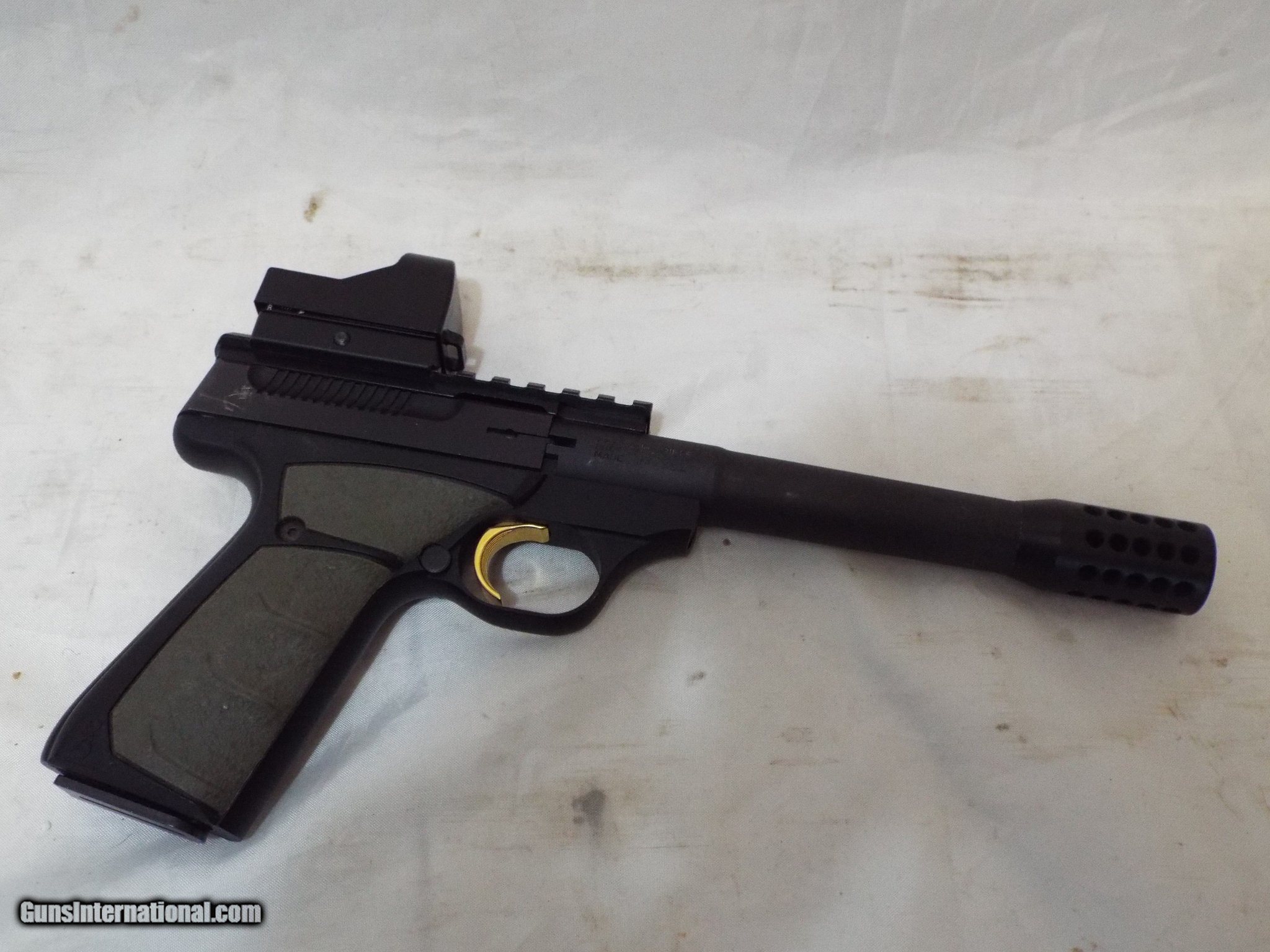 Description: Guns Listing ID: 584237 Browning Buckmark 2013 Mfg Cmore RTS2 sight flash suppressor threaded barrel SOLD Manufacturer: BROWNING Model: BUCK MARK Caliber Info: .22 LR Condition: Used - Non-Certified Barrels: 6" BARREL Action: SEMI AUTOMATIC Finish: BLACK & GREEN |