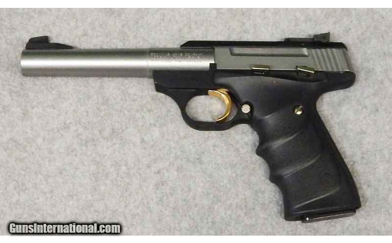 Description: Browning Buck Mark with a matte blued finish, tapered bull barrel, over molded grips. Adjustable rear fixed blade sights. Is in good condition. Comes with original box. .22 Long Rifle SOLD Chambers: Semi auto. Metal Condition: Good. Wood Condition: Good. Barrels: 5.5" barrel Triggers: Single gold trigger. Sights: Adjustable rear and blade front. Item Location: Acworth, GA |