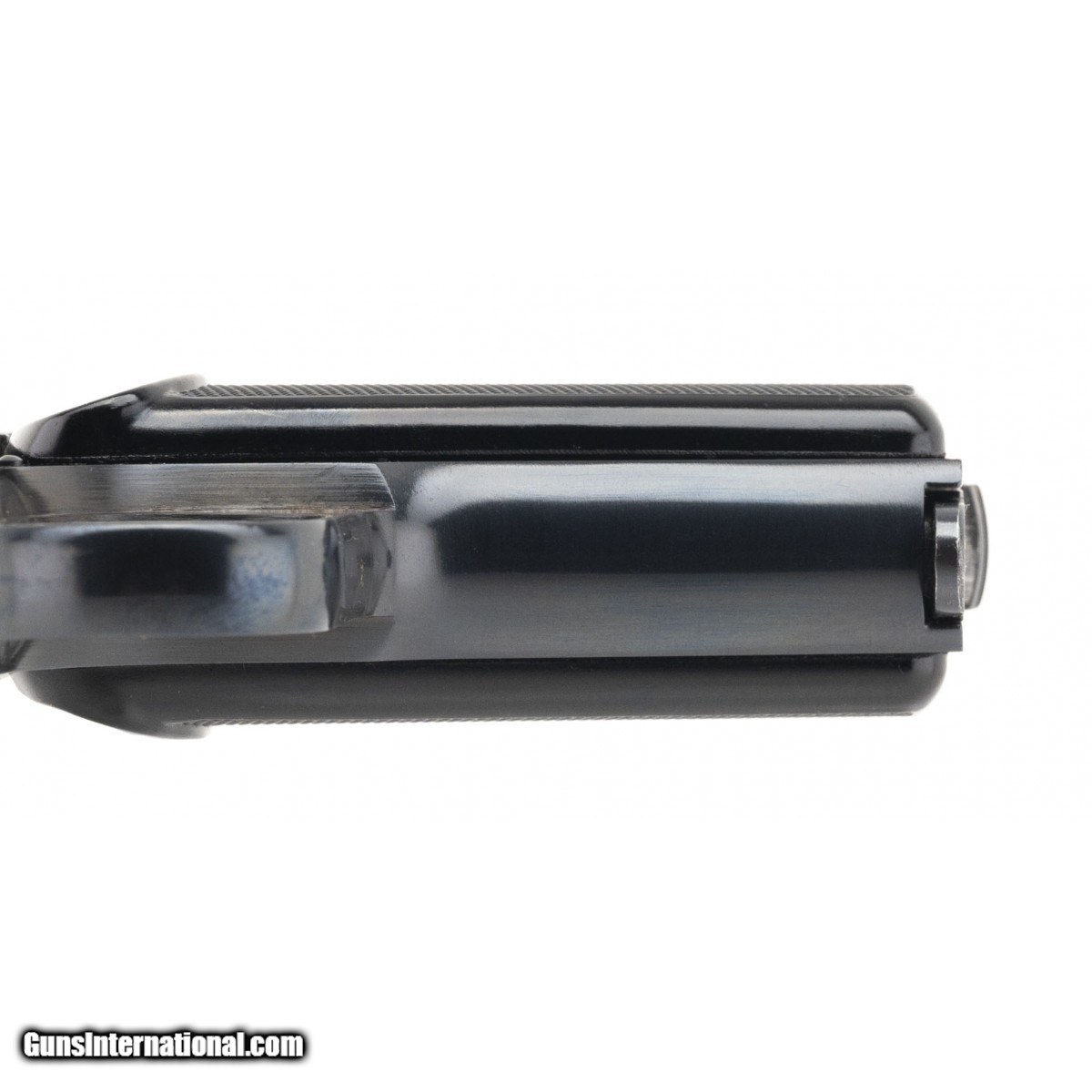 Post-war Belgian made pocket auto, 1960's vintage. Bore and action are excellent. Has a small blemish on the slide, otherwise very nice condition. Comes with Browning pouch.