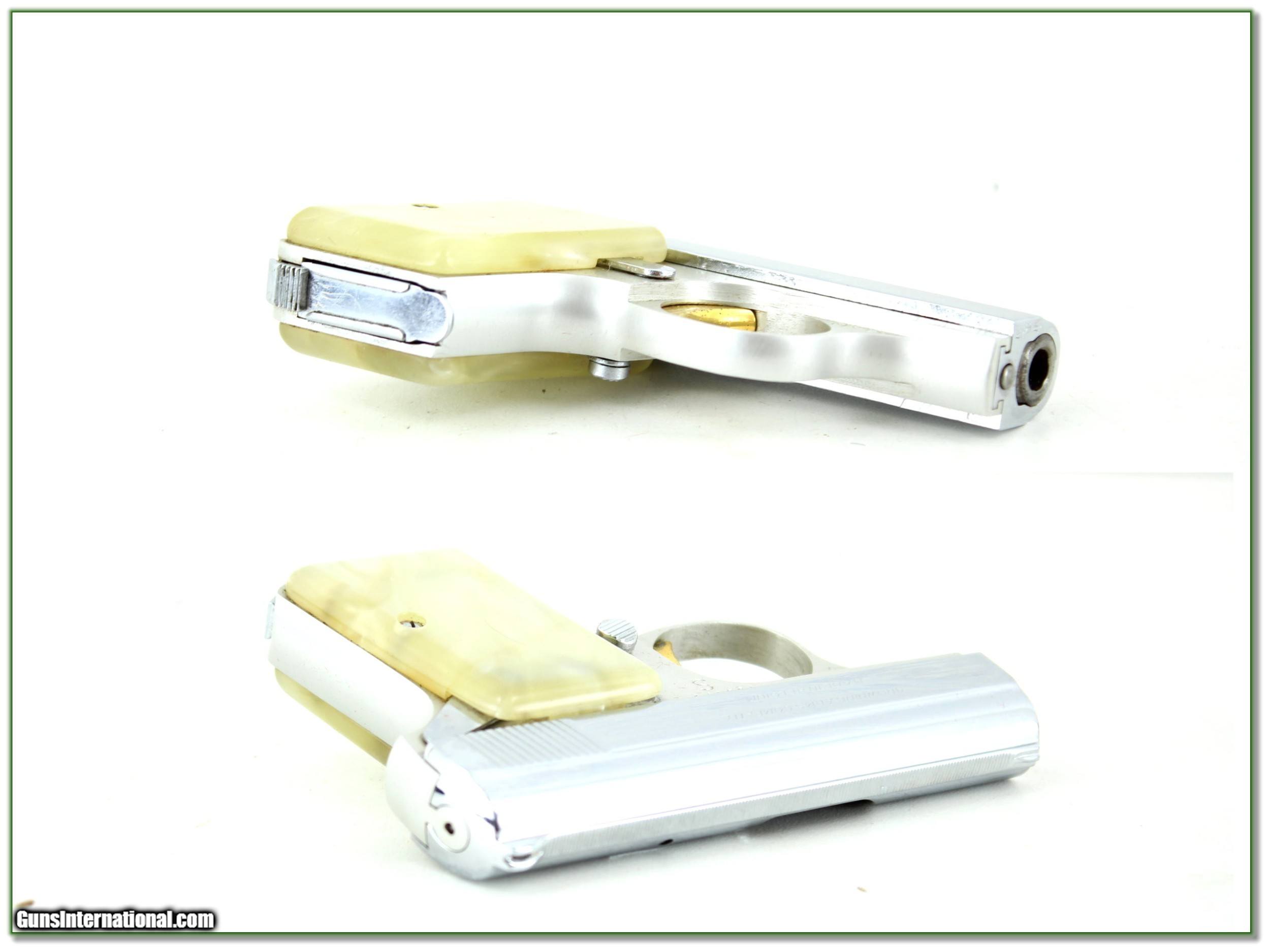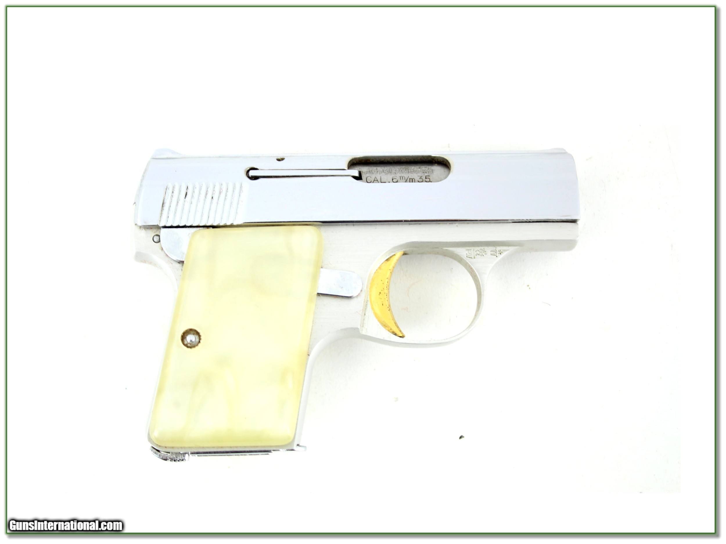 Description: This Baby Browning was made in Belgium in 1967. It is the Baby 25 with nickel platting and pearl grips. It is in top collector condition with no marks I see! It comes as seen in factory pouch and manual with cleaning rod! These continue to increase in value year over year and haven’t been made since 1969. It is a Shooting Investment. Shipping with insurance is $39. Please email me with any questions or larger pictures. (Consign your quality firearms with Shooting Investments for only 12%! Let me know if you have any you would like to sell!) 20-0719 Payment: Payment is by Money Order, Cashiers Check or Personal Check. I can now also accept Credit Cards (MasterCard, Visa, Discover & American Express) with a 3% convenience fee. Shipping: The shipping charge will be listed in each description. It is $39 for most firearms. Some heavy guns or those insured for over $2000 will be higher. Shipments to Alaska and Hawaii are higher because air shipment is required. Most firearms are shipped on Tuesday and Thursday and usually in 5 days of receipt of payment. We package all shipments carefully and insure them. Optics are shipped Priority Mail and most other non-firearm shipments are shipped First Class. Returns: Our return policy is simple. If for any reason you are not pleased with your purchase, you may return your item for a full refund of purchase price. Ammunition cannot be returned. It is important to us that you are happy. Guns cannot be fired or dissembled before returning them and they must be returned in the same condition as received. Notification of a return must occur with-in 3 days of receipt at your dealer. Shipping, convenience and dealer fees are not refundable and are the responsibility of the buyer. Lay-a-way: If needed, we offer a 60 day lay-a-way option on most firearms. It is 1/3 now, 1/3 in 30 days and 1/3 in 60 days. Lay-a-way firearm sales are final and if not completed the first payment cannot be returned. Consigning your firearms with Shooting Investments: We will help you get top dollar for your firearms. While most local guns shops charge 20% or more, our fee is only 12% with a minimum of $75. At your local gun shop it might take months to sell. Selling on-line provides instant access to thousands of interested buyers. You won’t find any other on-line dealer willing to sell your firearms for only 12% or listing every gun on 3 separate s. Selling through an House typically costs the seller 15% and the buyer an addition 15% (so 30%) and you have to wait several months to sell and longer to receive funds. If properly priced, we will sell your firearms in a few weeks. Send us an email or give us a call and we’ll explain how easy it is for you to get top dollar. Trading: Trading for use is really just buying your gun to re-sell. If you have a gun you want to trade, please email a picture and we will let you know what we can give or it. You will always get more if we sell it for you on consignment. Help for California Buyers: We are happy to ship to California. It is the buyer’s responsibility to make sure any item you buy is legal in your state. We are also happy to help with your purchase of a firearm from someone other than us. If you see a gun you would like to buy but the seller can’t or won’t ship to California they can ship to use and we’ll then ship it to your California dealer. The cost for this service is only $30 + shipping. Let us know if we can help! SOLD |