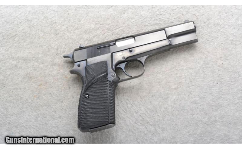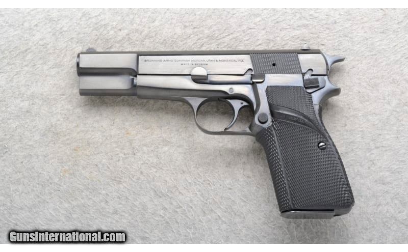 Description: This Browning Model Automatic is a semi-auto pistol in 9mm Cal. It has a 4.5 inch barrel with a rear serrated slide. A blade front sight and notch rear sight. The grip is a checkered black rubber made by Pachmayr. 9mm Parabellum SOLD Chambers: 13 round magazine. Metal Condition: Excellent. Bore Condition: Excellent. Barrels: 4.5 inch barrel with a rear serrated slide. Weight: 34 oz. Sights: Blade front. Notch rear. Item Location: Richfield, WI |