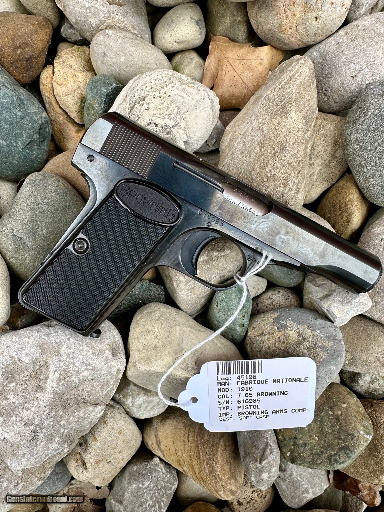 Description: Guns Listing ID: 1250415 Old school pocket Browning. Comes with a soft case. SOLD Manufacturer: BROWNING Model: 1910 Caliber Info: 7.65MM Condition: Used - Non-Certified Barrels: 3.14 BARREL Finish: BLACK |