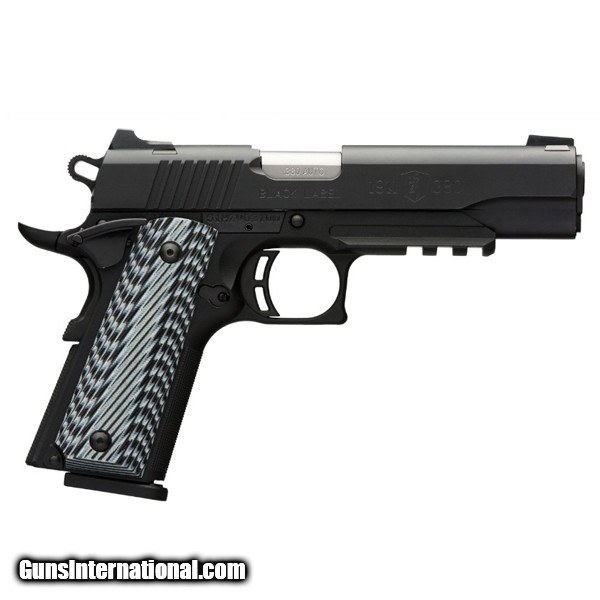 Description: Custom grade design and features. Machined layered G-10 side-slab grips, an extended beavertail safety, steel three-dot combat sights or night sights, an ambidextrous extended frame safety, a skeletonized trigger and bobbed hammer, textured front and back straps. The Black Label 1911-30 Pro is a custom-grade pistol, straight from the factory. Size Matters. The Browning 1911-380 combines two of John M. Browning's most lasting innovations - the Model 1911 and the 380 ACP cartridge - into a modern, lightweight pistol. Unlike most of the modern "pocket pistols" that chamber the snappy 380 ACP cartridge, the 1911-380 is slightly larger to better manage recoil for improved control that makes follow-up shots faster and more accurate. The longer barrel increases bullet velocity for more downrange punch and improved accuracy. The grip is compact, yet is long and wide enough to allow the shooting hand full purchase for added shooting comfort. Browning 1911- .380 ACP Black Label Pro Handgun