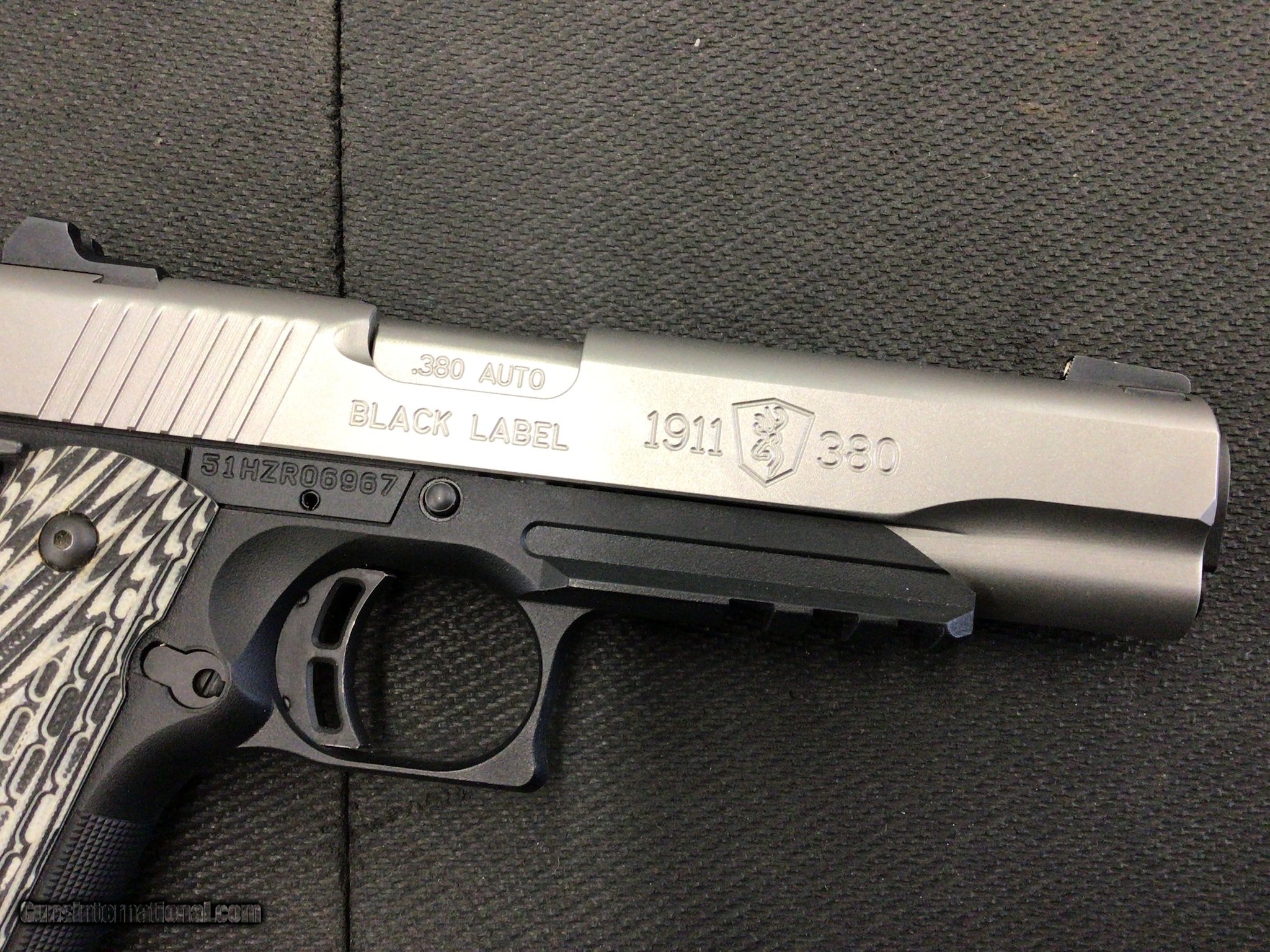 Description: Guns Listing ID: 494870 Browning 1911-380 Black label. 2 tone stainless and black. G10 grips. Comes with box but no extras. SOLD Manufacturer: BROWNING Model: 1911-380 BLACK LABEL Caliber Info: 380 ACP Condition: Used - Non-Certified Barrels: 4.25 BARREL Finish: STAINLESS AND BLACK |