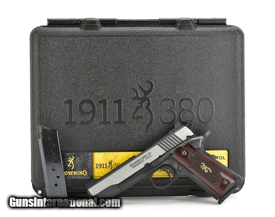 Description: Browning 1911 Black Label .380 ACP caliber pistol. All black model with wood grips, polished slide with box and magazine. Excellent condition.