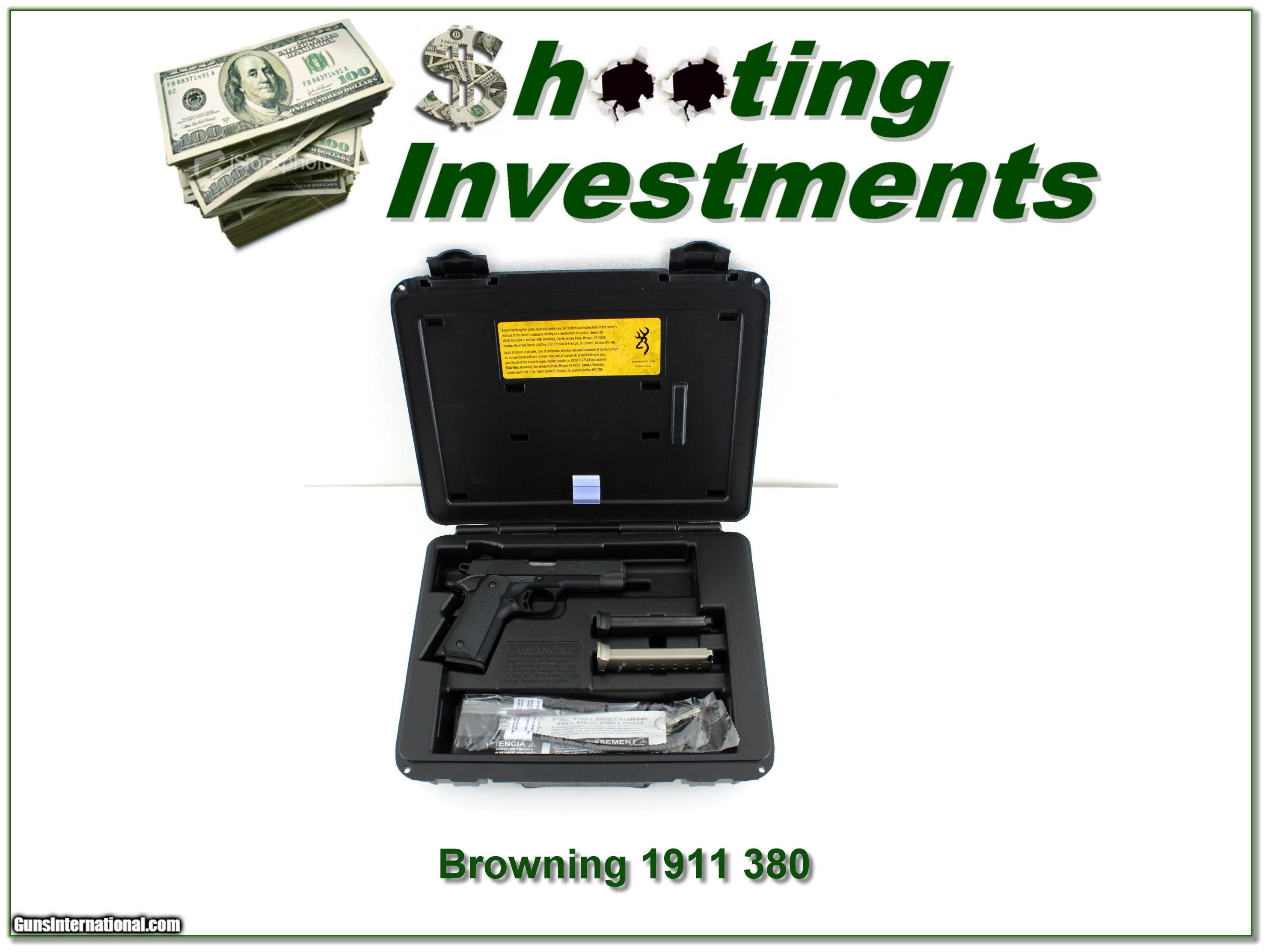 Description: Browning 1911 Black Label Compact .380 ACP with 3.625” barrel. Lightweight alloy frame, textured grips, and skeletonized trigger offer easy handling and smooth performance. A modern take on the classic 1911 design—perfect for concealed carry or range use. In vey good condition with sleek, tactical styling. This pistol includes the original case and 3 magazines. I am selling this one on consignment and as such lay-a-way can’t be used. It does of course have the standard 3-day inspection. Shipping and insurance is $39. Please email me with any questions or larger pictures. (Consign your quality firearms with Shooting Investments for only 12%! Let me know if you have any you would like to sell!) 25-0667 Payment: Payment is by Money Order, Cashier’s Check or Personal Check. I can now also accept Credit Cards (MasterCard, Visa, Discover & American Express) with a 3% convenience fee. Shipping: The shipping charge will be listed in each description. It is $49 for most firearms. Some heavy guns or those insured for over $2000 will be higher. Shipments to Alaska and Hawaii are higher because air shipment is required. Most firearms are shipped on Tuesday and Thursday and usually in 5 days of receipt of payment. We package all shipments carefully and insure them. Optics are shipped Priority Mail and most other non-firearm shipments are shipped First Class. Returns: Our return policy is simple. If for any reason you are not pleased with your purchase, you may return your item for a full refund of purchase price. Ammunition cannot be returned. It is important to us that you are happy. Guns cannot be fired or dissembled before returning them and they must be returned in the same condition as received. Notification of a return must occur within 3 days of receipt at your dealer. Shipping, convenience and dealer fees are not refundable and are the responsibility of the buyer. Lay-a-way: If needed, we offer a 60 day lay-a-way option on most firearms. It is 1/3 now, 1/3 in 30 days and 1/3 in 60 days. Lay-a-way firearm sales are final and cannot be returned. If a lay-a-way is not completed the first payment cannot be refunded. Consigning your firearms with Shooting Investments: We will help you get top dollar for your firearms. While most local guns shops charge 20% or more, our fee is only 12% with a minimum of $100. At your local gun shop it might take months to sell. Selling on-line provides instant access to thousands of interested buyers. You won’t find any other on-line dealer willing to sell your firearms for only 12% or listing every gun on 3 separate s. Selling through an House typically costs the seller 15% and the buyer an addition 15% (so 30%) and you have to wait several months to sell and longer to receive funds. If properly priced, we will sell your firearms within a few weeks. Send us an email or give us a call and we’ll explain how easy it is for you to get top dollar. Trading: Trading for us is really just buying your gun to re-sell. If you have a gun you want to trade, please email a picture and we will let you know what we can give for it. You will always get more if we sell it for you on consignment. SOLD |