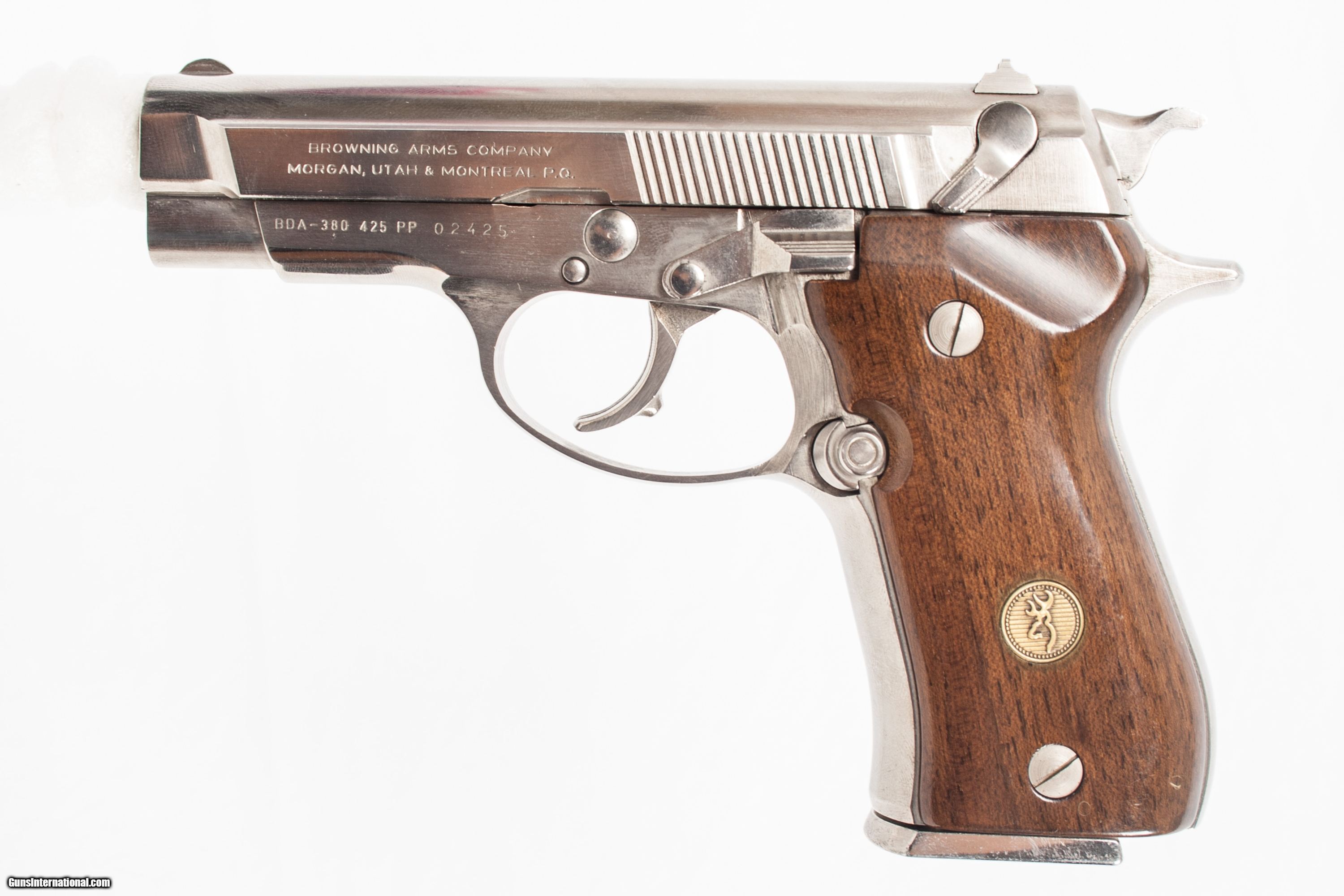 BROWNING BDA CHAMBERED IN 380ACP WITH A 4 INCH BARREL COMES WITH BOX. THIS GUN IS IN EXCELLENT CONDITION AND IS COVERED BY DURY'S LIFETIME WARRANTY.