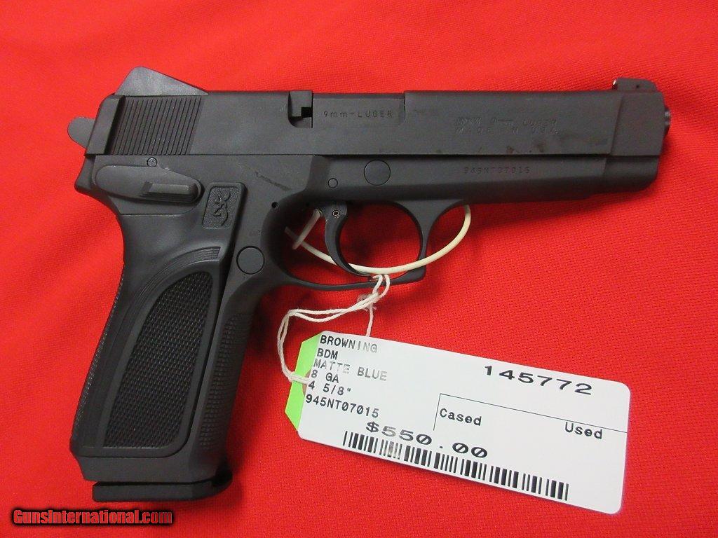 Description: Browning BDM 9mm 4 5/8" (LNIB)-- This gun appears to be factory original and excellent condition. Includes factory hard case and three magazines. SOLD |