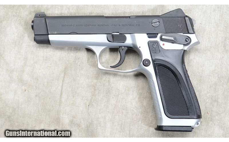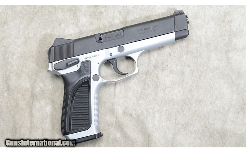 Description: This USA made Browning features two-tone black and stainless steel frame and slide. it has three-dot post and notch sights and the safety includes a decocker. 9mm Luger SOLD Chambers: 10 Metal Condition: Excellent. Wood Condition: Excellent. Bore Condition: Shiny and bright. Barrels: 4-5/8 inch Triggers: Factory single and double action trigger. Butt Pad: Textured black plastic. Weight: 33 oz. Sights: Three-dot sight system. Item Location: Rogers |