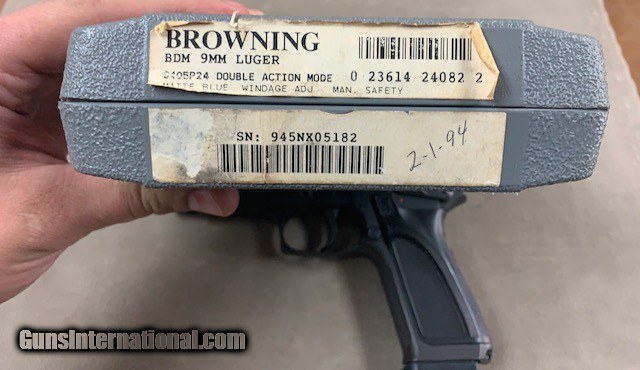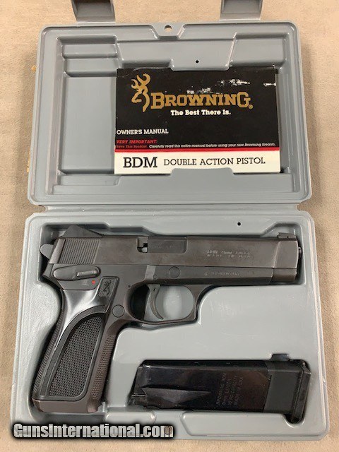 Description: This a 98% new Browning Model BDM 9mm Pistol in the original box with manual and label. Pistol looks as though it has seen very little use at all. Come with its factory 10 round magazine. This is a great little auto pistol for someone with small hands as it has the smallest grip of any of the double stack magazine pistols that I am aware of - and hi cap mags are available on line. SOLD |