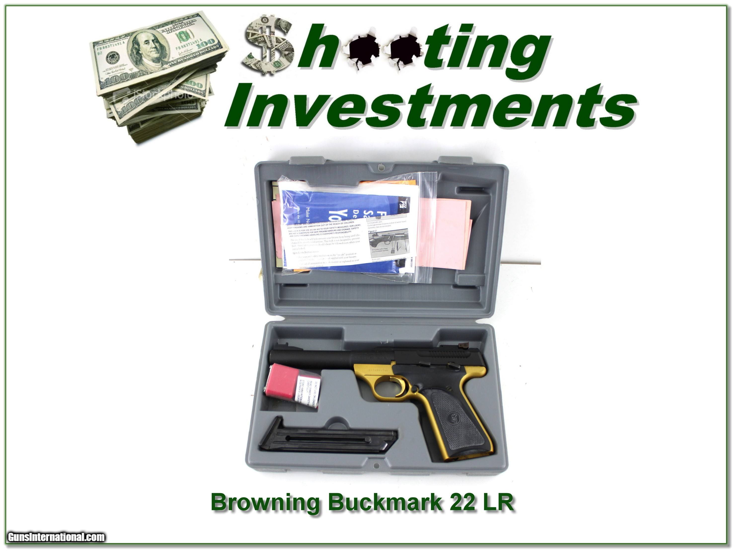 Description: Shooters and collectors this is a like new condition Browning Buck Mark “Gold” 22 LR. It comes as seen in case with manual and 1 magazine. I am selling this one on consignment and as such lay-a-way can’t be used. It does of course have the standard 3-day inspection. Shipping and insurance is $49. Please email me with any questions or larger pictures. (Consign your quality firearms with Shooting Investments for only 12%! Let me know if you have any you would like to sell!) 25-0335 Payment: Payment is by Money Order, Cashier’s Check or Personal Check. I can now also accept Credit Cards (MasterCard, Visa, Discover & American Express) with a 3% convenience fee. Shipping: The shipping charge will be listed in each description. It is $49 for most firearms. Some heavy guns or those insured for over $2000 will be higher. Shipments to Alaska and Hawaii are higher because air shipment is required. Most firearms are shipped on Tuesday and Thursday and usually in 5 days of receipt of payment. We package all shipments carefully and insure them. Optics are shipped Priority Mail and most other non-firearm shipments are shipped First Class. Returns: Our return policy is simple. If for any reason you are not pleased with your purchase, you may return your item for a full refund of purchase price. Ammunition cannot be returned. It is important to us that you are happy. Guns cannot be fired or dissembled before returning them and they must be returned in the same condition as received. Notification of a return must occur within 3 days of receipt at your dealer. Shipping, convenience and dealer fees are not refundable and are the responsibility of the buyer. Lay-a-way: If needed, we offer a 60 day lay-a-way option on most firearms. It is 1/3 now, 1/3 in 30 days and 1/3 in 60 days. Lay-a-way firearm sales are final and cannot be returned. If a lay-a-way is not completed the first payment cannot be refunded. Consigning your firearms with Shooting Investments: We will help you get top dollar for your firearms. While most local guns shops charge 20% or more, our fee is only 12% with a minimum of $100. At your local gun shop it might take months to sell. Selling on-line provides instant access to thousands of interested buyers. You won’t find any other on-line dealer willing to sell your firearms for only 12% or listing every gun on 3 separate s. Selling through an House typically costs the seller 15% and the buyer an addition 15% (so 30%) and you have to wait several months to sell and longer to receive funds. If properly priced, we will sell your firearms within a few weeks. Send us an email or give us a call and we’ll explain how easy it is for you to get top dollar. Trading: Trading for us is really just buying your gun to re-sell. If you have a gun you want to trade, please email a picture and we will let you know what we can give for it. You will always get more if we sell it for you on consignment. SOLD |
