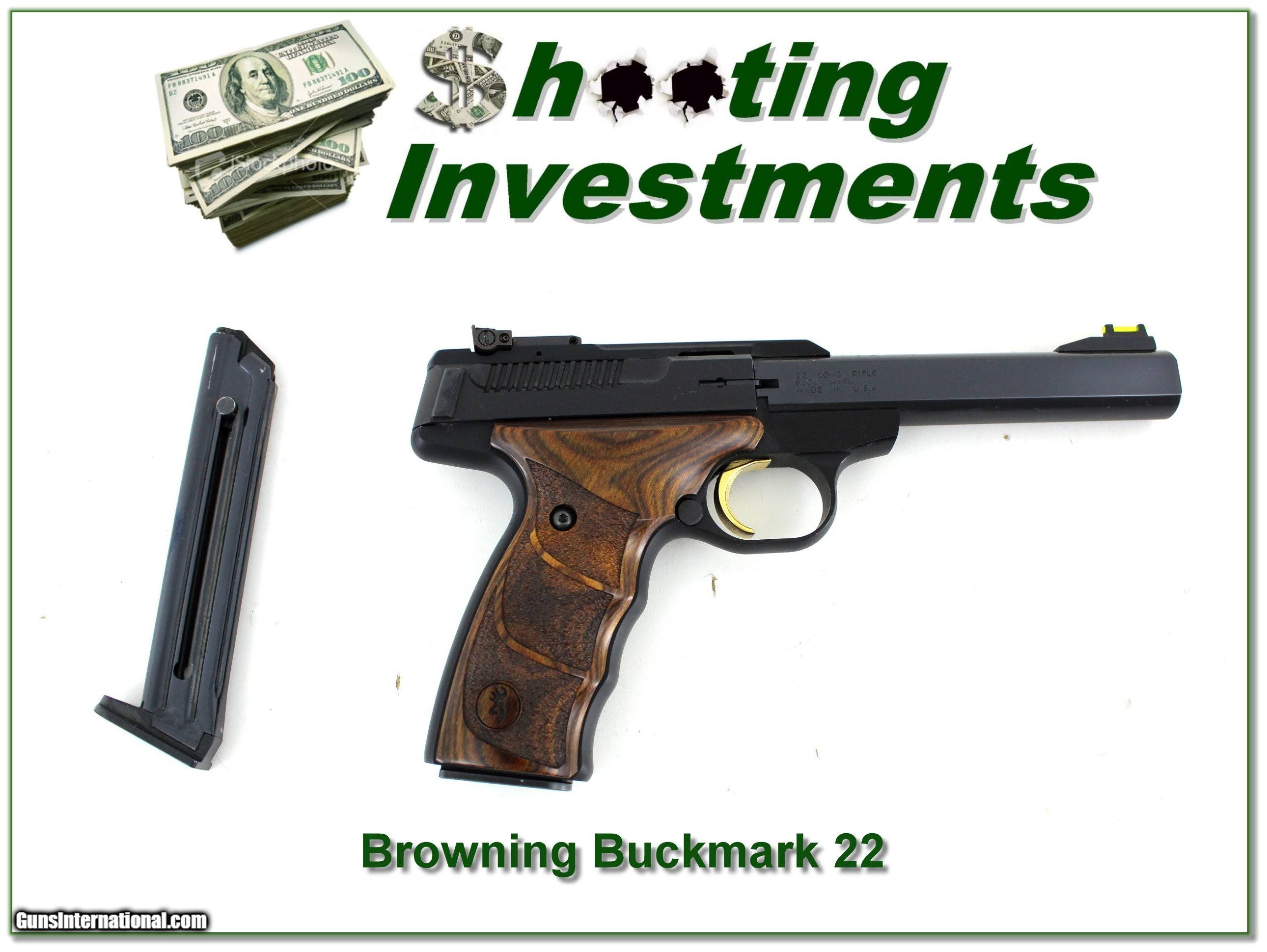 Description: This is a like new Browning Buckmark with 5.5in barrel and target sights. I am selling this one on consignment and as such lay-a-way can’t be used. It does of course have the standard 3-day inspection. Shipping and insurance is $39. Please email me with any questions or larger pictures. (Consign your quality firearms with Shooting Investments for only 12%! Let me know if you have any you would like to sell!) 24-0512 Payment: Payment is by Money Order, Cashier’s Check or Personal Check. I can now also accept Credit Cards (MasterCard, Visa, Discover & American Express) with a 3% convenience fee. Shipping: The shipping charge will be listed in each description. It is $49 for most firearms. Some heavy guns or those insured for over $2000 will be higher. Shipments to Alaska and Hawaii are higher because air shipment is required. Most firearms are shipped on Tuesday and Thursday and usually in 5 days of receipt of payment. We package all shipments carefully and insure them. Optics are shipped Priority Mail and most other non-firearm shipments are shipped First Class. Returns: Our return policy is simple. If for any reason you are not pleased with your purchase, you may return your item for a full refund of purchase price. Ammunition cannot be returned. It is important to us that you are happy. Guns cannot be fired or dissembled before returning them and they must be returned in the same condition as received. Notification of a return must occur within 3 days of receipt at your dealer. Shipping, convenience and dealer fees are not refundable and are the responsibility of the buyer. Lay-a-way: If needed, we offer a 60 day lay-a-way option on most firearms. It is 1/3 now, 1/3 in 30 days and 1/3 in 60 days. Lay-a-way firearm sales are final and cannot be returned. If a lay-a-way is not completed the first payment cannot be refunded. Consigning your firearms with Shooting Investments: We will help you get top dollar for your firearms. While most local guns shops charge 20% or more, our fee is only 12% with a minimum of $75. At your local gun shop it might take months to sell. Selling on-line provides instant access to thousands of interested buyers. You won’t find any other on-line dealer willing to sell your firearms for only 12% or listing every gun on 3 separate s. Selling through an House typically costs the seller 15% and the buyer an addition 15% (so 30%) and you have to wait several months to sell and longer to receive funds. If properly priced, we will sell your firearms within a few weeks. Send us an email or give us a call and we’ll explain how easy it is for you to get top dollar. Trading: Trading for us is really just buying your gun to re-sell. If you have a gun you want to trade, please email a picture and we will let you know what we can give for it. You will always get more if we sell it for you on consignment. SOLD |