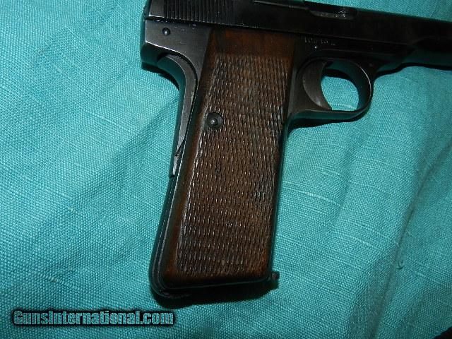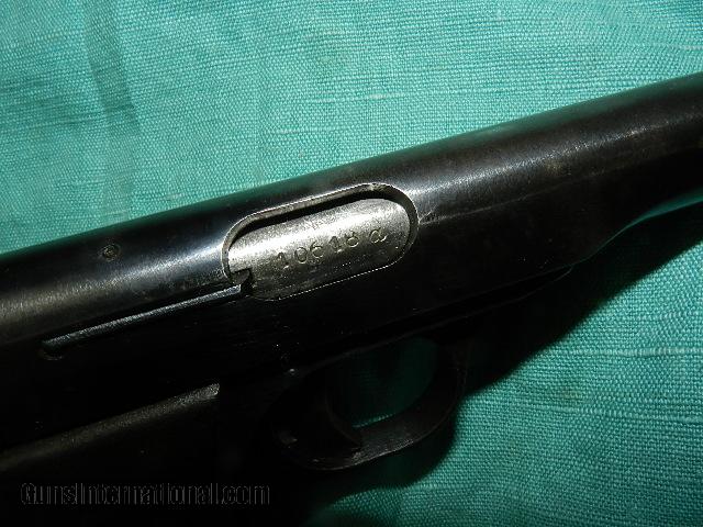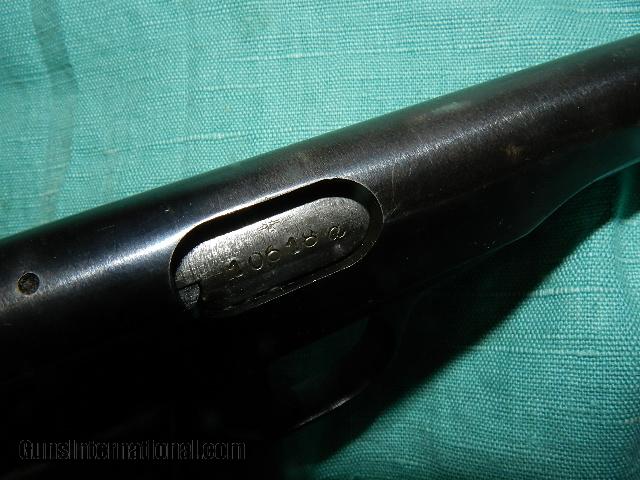 Description: A solid good working wartime Browning FN model 1922 that locks up tight and the bore is very good with slight roughness in the grooves , but with shoot real good. The war baby was made with the Nazi Germany occupation and has a war time thin blue finish and perhaps 85% remains with the most wear at the muzzle from being holstered. a few shallow scratches on the rear grip safety possibly created from the holster snap. Left side has three proofs on the slide and one on the trigger guard. The right side has a proof on the barrel, and all three serial numbers match and have an a code after them. The wartime stippled walnut grips are very good with wear at the lower front edge. To buy a gun from me you must get a direct email for me, with details, and shipping cost. We don’t have asite .I prefer money orders or a check. Item ships when funds come in. If you can only pay with a card let me know. I’m sorry I don’t list my phone number, did that for 30 days, never again.. I can’t talk on the phone all day…who will ship the guns? I’m just one person, and it’s very busy here! I do a brisk volume! I hope you like my wide selection of unusual guns, knives and gun parts. Shipping price determined by zip code. I try to keep the prices affordable, which means I make less money than most dealers. You won’t get altitude sickness with my prices! I consistently have the best selection of older guns If you attempt to buy, you must still contact us for details, buying doesn't end the sale, it just sends an email telling us you want to buy this gun. A phone call won’t secure a sale! Not home many times, the first buyer by email buys the gun !Thissite does not close down a sale when you do a BUY! I can get six buys in an hour, first buyer to email gets the guns, others are in second place! Best to send another email . Sometimes not home to get calls. Some guns are required shipment to a gun dealer near you for a transfer to you when it arrives. With the widest selection of older guns at great prices, We don’t have a store, and sell on the internet only. SOLD Curio/Relic: Yes |