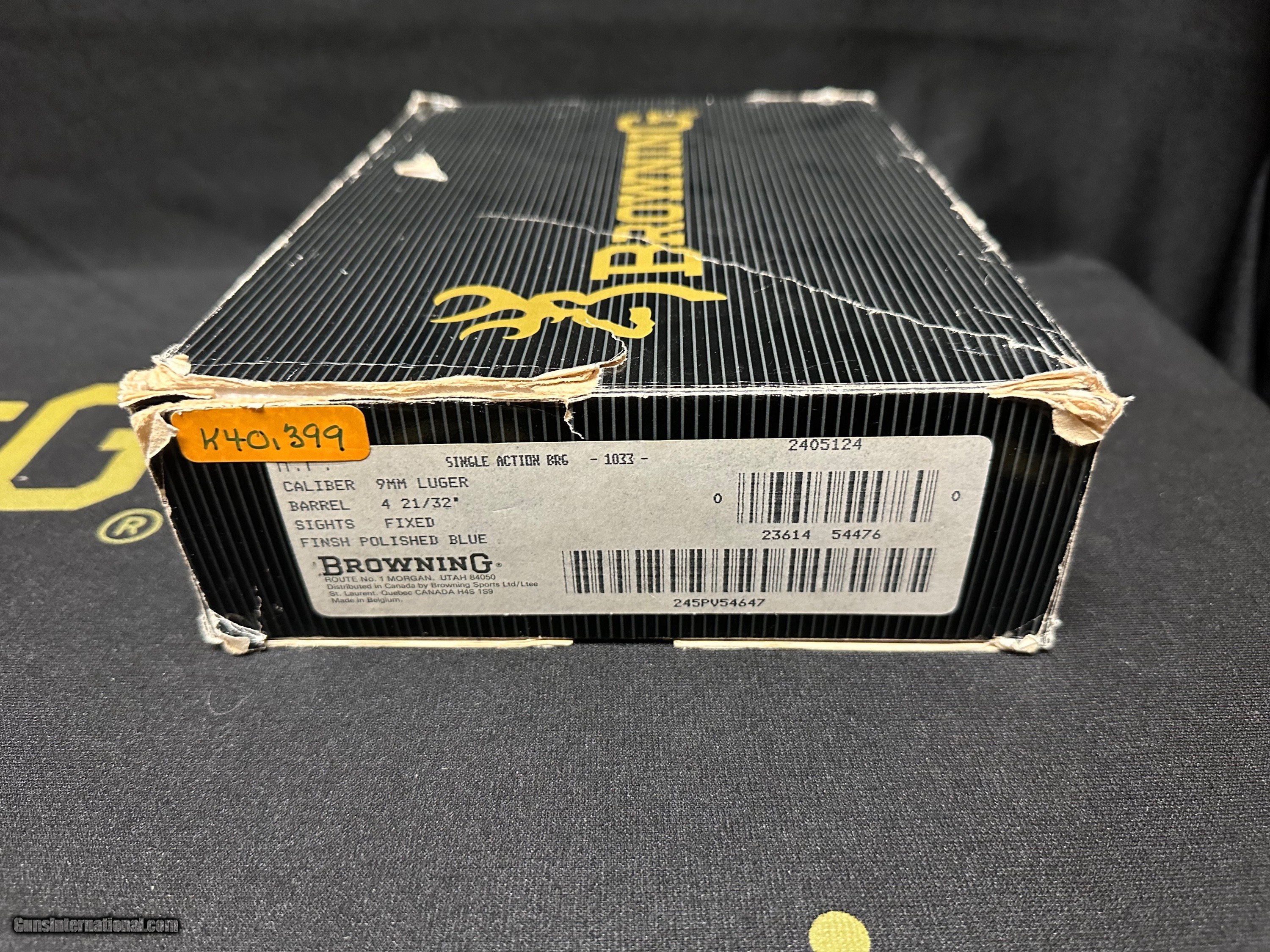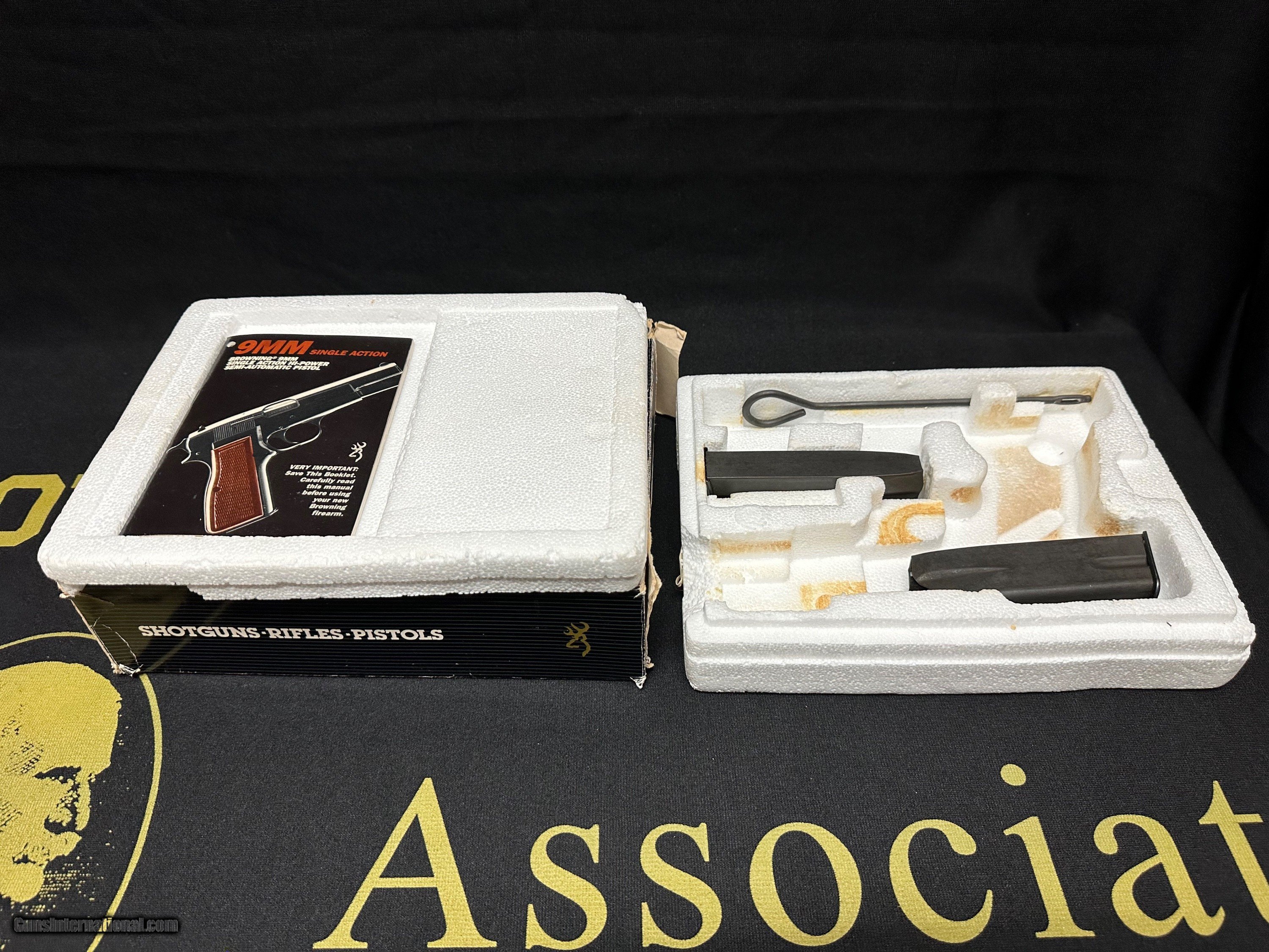 Description: Browning Hi power 9mm. Unfired in the original box. Manafactured in 1985. Original blue and wood grips. Comes with cleaning rod and two magazines and the manual. This discontinued handgun was created by master gunmaker John M Browning. This will make a great addition to your collection. For more information about this pistol or for purchasing it ((( PLEASE GIVE US CALL AT ))) 1-(479)-968-4106. PRICE - $1,900 + Shipping SOLD Handgun Caliber: 9x19mm Parabellum (9mm Luger, 9x19mm NATO) Manufacturer: Browning Model: Hi Power Serial Number: 245PV54647 Condition: NEW Manufacture Date: 1985 Item Location: Arkansas |