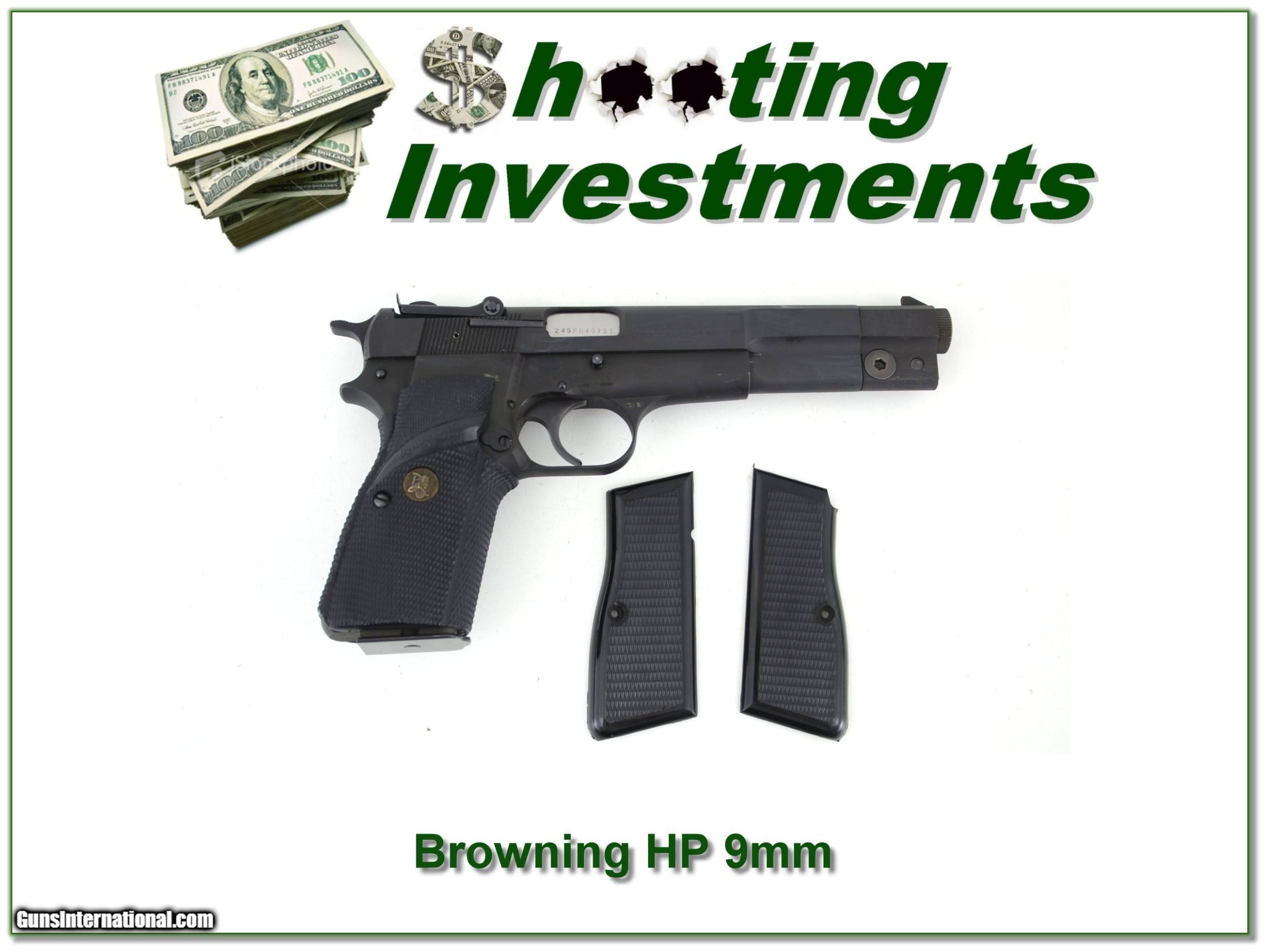 Description: Collectors and shooters, this is a hard-to-find excellent condition Belgium made Browning Hi Power Competition 9mm. These has extended 5in barrels. This one has standard black grips and the rubber ones as seen. If fired, I can’t tell from the slide. I find only a few storage marks on the extension. I am selling this one on consignment and as such lay-a-way can’t be used. It does of course have the standard 3-day inspection. Shipping and insurance is $39. Please email me with any questions or larger pictures. (Consign your quality firearms with Shooting Investments for only 12%! Let me know if you have any you would like to sell!) 21-1313 Payment: Payment is by Money Order, Cashiers Check or Personal Check. I can now also accept Credit Cards (MasterCard, Visa, Discover & American Express) with a 3% convenience fee. Shipping: The shipping charge will be listed in each description. It is $39 for most firearms. Some heavy guns or those insured for over $2000 will be higher. Shipments to Alaska and Hawaii are higher because air shipment is required. Most firearms are shipped on Tuesday and Thursday and usually in 5 days of receipt of payment. We package all shipments carefully and insure them. Optics are shipped Priority Mail and most other non-firearm shipments are shipped First Class. Returns: Our return policy is simple. If for any reason you are not pleased with your purchase, you may return your item for a full refund of purchase price. Ammunition cannot be returned. It is important to us that you are happy. Guns cannot be fired or dissembled before returning them and they must be returned in the same condition as received. Notification of a return must occur with-in 3 days of receipt at your dealer. Shipping, convenience and dealer fees are not refundable and are the responsibility of the buyer. Lay-a-way: If needed, we offer a 60 day lay-a-way option on most firearms. It is 1/3 now, 1/3 in 30 days and 1/3 in 60 days. Lay-a-way firearm sales are final and if not completed the first payment cannot be returned. Consigning your firearms with Shooting Investments: We will help you get top dollar for your firearms. While most local guns shops charge 20% or more, our fee is only 12% with a minimum of $75. At your local gun shop it might take months to sell. Selling on-line provides instant access to thousands of interested buyers. You won’t find any other on-line dealer willing to sell your firearms for only 12% or listing every gun on 3 separate s. Selling through an House typically costs the seller 15% and the buyer an addition 15% (so 30%) and you have to wait several months to sell and longer to receive funds. If properly priced, we will sell your firearms in a few weeks. Send us an email or give us a call and we’ll explain how easy it is for you to get top dollar. Trading: Trading for use is really just buying your gun to re-sell. If you have a gun you want to trade, please email a picture and we will let you know what we can give or it. You will always get more if we sell it for you on consignment. Help for California Buyers: We are happy to ship to California. It is the buyer’s responsibility to make sure any item you buy is legal in your state. We are also happy to help with your purchase of a firearm from someone other than us. If you see a gun you would like to buy but the seller can’t or won’t ship to California they can ship to use and we’ll then ship it to your California dealer. The cost for this service is only $30 + shipping. Let us know if we can help! SOLD |