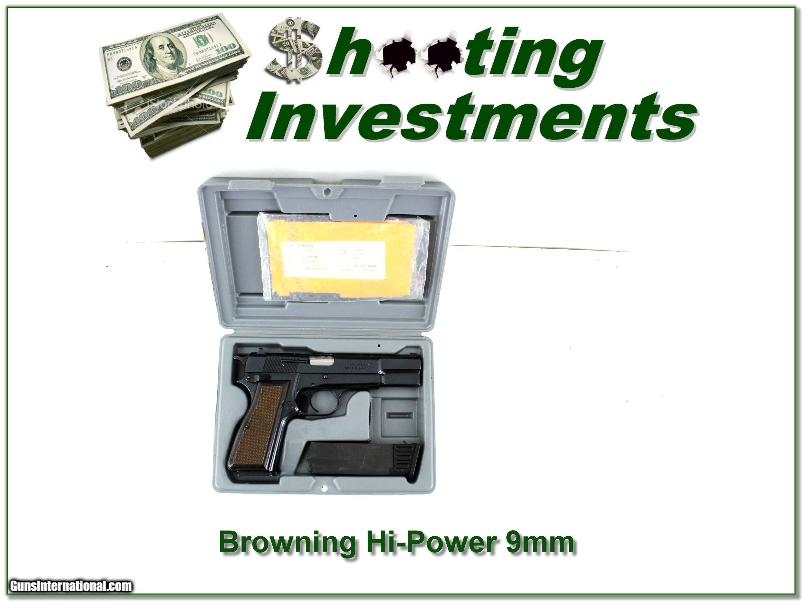 Description: This is a near new Browning Hi-Power NWTF 1 of 300 made gun. It was made in 2013 to commemorate the 40th anniversary of the NWTF. At most a few rounds fired. It has a deep gloss blue with no marks I see and comes with 2 magazines in case with papers. It is a real Shooting Investment! I am selling this one on consignment and as such lay-a-way can’t be used. It does of course have the standard 3-day inspection. Shipping and insurance is $49. Please email me with any questions or larger pictures. (Consign your quality firearms with Shooting Investments for only 12%! Let me know if you have any you would like to sell!) 22-0521 Payment: Payment is by Money Order, Cashier’s Check or Personal Check. I can now also accept Credit Cards (MasterCard, Visa, Discover & American Express) with a 3% convenience fee. Shipping: The shipping charge will be listed in each description. It is $49 for most firearms. Some heavy guns or those insured for over $2000 will be higher. Shipments to Alaska and Hawaii are higher because air shipment is required. Most firearms are shipped on Tuesday and Thursday and usually in 5 days of receipt of payment. We package all shipments carefully and insure them. Optics are shipped Priority Mail and most other non-firearm shipments are shipped First Class. Returns: Our return policy is simple. If for any reason you are not pleased with your purchase, you may return your item for a full refund of purchase price. Ammunition cannot be returned. It is important to us that you are happy. Guns cannot be fired or dissembled before returning them and they must be returned in the same condition as received. Notification of a return must occur within 3 days of receipt at your dealer. Shipping, convenience and dealer fees are not refundable and are the responsibility of the buyer. Lay-a-way: If needed, we offer a 60 day lay-a-way option on most firearms. It is 1/3 now, 1/3 in 30 days and 1/3 in 60 days. Lay-a-way firearm sales are final and cannot be returned. If a lay-a-way is not completed the first payment cannot be refunded. Consigning your firearms with Shooting Investments: We will help you get top dollar for your firearms. While most local guns shops charge 20% or more, our fee is only 12% with a minimum of $75. At your local gun shop it might take months to sell. Selling on-line provides instant access to thousands of interested buyers. You won’t find any other on-line dealer willing to sell your firearms for only 12% or listing every gun on 3 separate s. Selling through an House typically costs the seller 15% and the buyer an addition 15% (so 30%) and you have to wait several months to sell and longer to receive funds. If properly priced, we will sell your firearms within a few weeks. Send us an email or give us a call and we’ll explain how easy it is for you to get top dollar. Trading: Trading for us is really just buying your gun to re-sell. If you have a gun you want to trade, please email a picture and we will let you know what we can give for it. You will always get more if we sell it for you on consignment. SOLD |