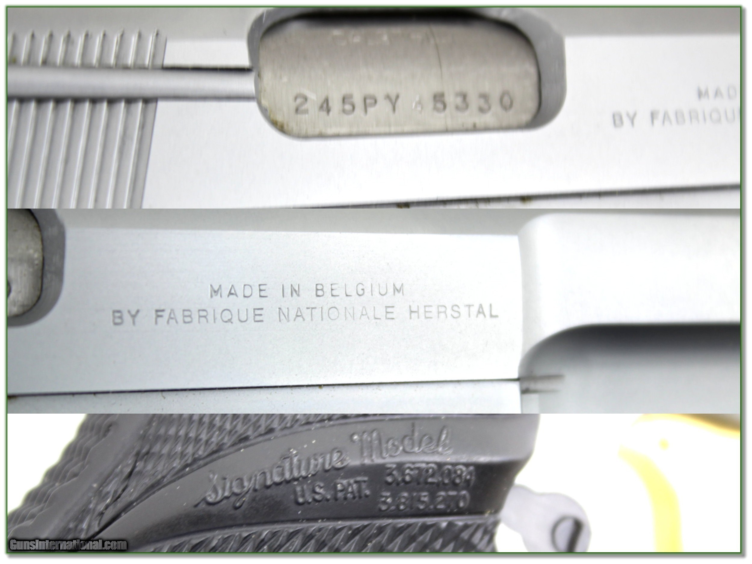 Description: Collectors, this is a hard to find Browning Hi-Power Stainless in 9mm. It was made in Belgium in 1982 and is in excellent condition. It comes as seen in soft case with 2 stainless magazines. I am selling this one on consignment and as such lay-a-way can’t be used. It does of course have the standard 3-day inspection. Shipping and insurance is $49. Please email me with any questions or larger pictures. (Consign your quality firearms with Shooting Investments for only 12%! Let me know if you have any you would like to sell!) 22-0348 Payment: Payment is by Money Order, Cashiers Check or Personal Check. I can now also accept Credit Cards (MasterCard, Visa, Discover & American Express) with a 3% convenience fee. Shipping: The shipping charge will be listed in each description. It is $49 for most long guns. Some heavy guns, over 48in boxes or those insured for over $2000 will be higher. Shipments to Alaska and Hawaii are higher because air shipment is required. Most firearms are shipped on Tuesday and Thursday and usually in 5 days of receipt of payment. We package all shipments carefully and insure them. Optics are shipped Priority Mail and most other non-firearm shipments are shipped First Class. Returns: Our return policy is simple. If for any reason you are not pleased with your purchase, you may return your item for a full refund of purchase price. Ammunition cannot be returned. It is important to us that you are happy. Guns cannot be fired or dissembled before returning them and they must be returned in the same condition as received. Notification of a return must occur with-in 3 days of receipt at your dealer. Shipping, convenience and dealer fees are not refundable and are the responsibility of the buyer. Lay-a-way: If needed, we offer a 60 day lay-a-way option on most firearms. It is 1/3 now, 1/3 in 30 days and 1/3 in 60 days. Lay-a-way firearm sales are final and if not completed the first payment cannot be returned. Consigning your firearms with Shooting Investments: We will help you get top dollar for your firearms. While most local guns shops charge 20% or more, our fee is only 12% with a minimum of $75. At your local gun shop it might take months to sell. Selling on-line provides instant access to thousands of interested buyers. You won’t find any other on-line dealer willing to sell your firearms for only 12% or listing every gun on 3 separate s. Selling through an House typically costs the seller 15% and the buyer an addition 15% (so 30%) and you have to wait several months to sell and longer to receive funds. If properly priced, we will sell your firearms in a few weeks. Send us an email or give us a call and we’ll explain how easy it is for you to get top dollar. Trading: Trading for use is really just buying your gun to re-sell. If you have a gun you want to trade, please email a picture and we will let you know what we can give or it. You will always get more if we sell it for you on consignment. Help for California Buyers: We are happy to ship to California. It is the buyer’s responsibility to make sure any item you buy is legal in your state. We are also happy to help with your purchase of a firearm from someone other than us. If you see a gun you would like to buy but the seller can’t or won’t ship to California they can ship to use and we’ll then ship it to your California dealer. The cost for this service is only $30 + shipping. Let us know if we can help! SOLD |