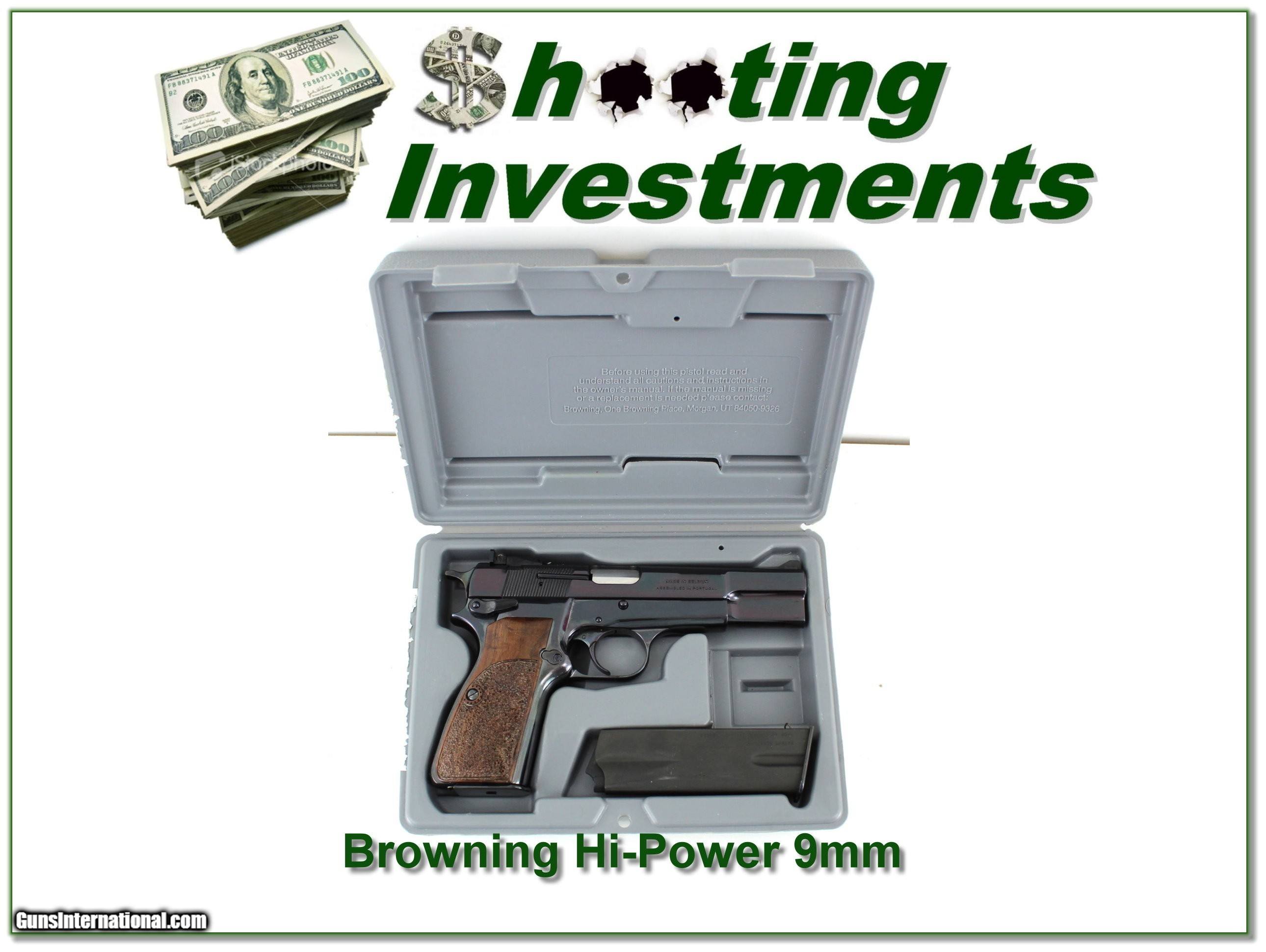 Description: Collectors, this is a beautiful 75th Anniversary Browning High Power 9mm. It has a deep polished blue and this one I believe is unfired in case. I find just a couple storage marks. It comes as seen in original case with 2 magazines. It will make a fine addition to your collection! I am selling this one on consignment and as such lay-a-way can’t be used. It does of course have the standard 3-day inspection. Shipping and insurance is $39. Please email me with any questions or larger pictures. (Consign your quality firearms with Shooting Investments for only 12%! Let me know if you have any you would like to sell!) 25-0028 Payment: Payment is by Money Order, Cashier’s Check or Personal Check. I can now also accept Credit Cards (MasterCard, Visa, Discover & American Express) with a 3% convenience fee. Shipping: The shipping charge will be listed in each description. It is $49 for most firearms. Some heavy guns or those insured for over $2000 will be higher. Shipments to Alaska and Hawaii are higher because air shipment is required. Most firearms are shipped on Tuesday and Thursday and usually in 5 days of receipt of payment. We package all shipments carefully and insure them. Optics are shipped Priority Mail and most other non-firearm shipments are shipped First Class. Returns: Our return policy is simple. If for any reason you are not pleased with your purchase, you may return your item for a full refund of purchase price. Ammunition cannot be returned. It is important to us that you are happy. Guns cannot be fired or dissembled before returning them and they must be returned in the same condition as received. Notification of a return must occur within 3 days of receipt at your dealer. Shipping, convenience and dealer fees are not refundable and are the responsibility of the buyer. Lay-a-way: If needed, we offer a 60 day lay-a-way option on most firearms. It is 1/3 now, 1/3 in 30 days and 1/3 in 60 days. Lay-a-way firearm sales are final and cannot be returned. If a lay-a-way is not completed the first payment cannot be refunded. Consigning your firearms with Shooting Investments: We will help you get top dollar for your firearms. While most local guns shops charge 20% or more, our fee is only 12% with a minimum of $100. At your local gun shop it might take months to sell. Selling on-line provides instant access to thousands of interested buyers. You won’t find any other on-line dealer willing to sell your firearms for only 12% or listing every gun on 3 separate s. Selling through an House typically costs the seller 15% and the buyer an addition 15% (so 30%) and you have to wait several months to sell and longer to receive funds. If properly priced, we will sell your firearms within a few weeks. Send us an email or give us a call and we’ll explain how easy it is for you to get top dollar. Trading: Trading for us is really just buying your gun to re-sell. If you have a gun you want to trade, please email a picture and we will let you know what we can give for it. You will always get more if we sell it for you on consignment. SOLD |