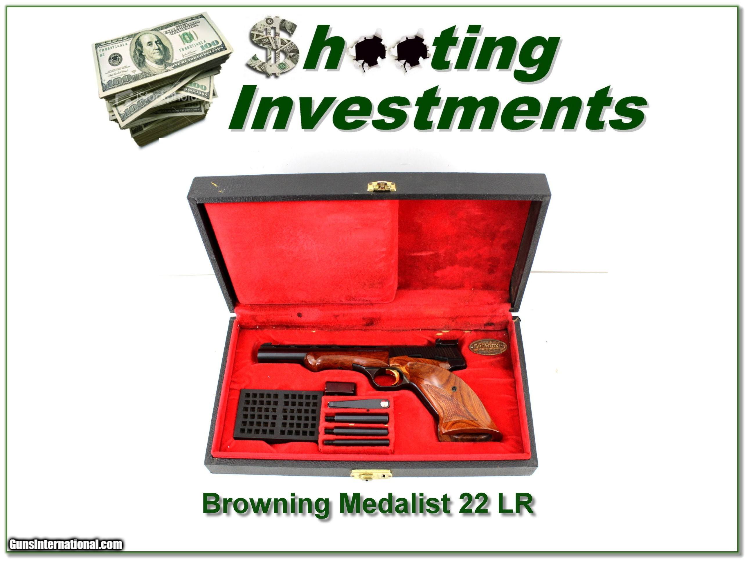 Description: This is a very nice Browning Medalist 22 LR made in Belgium in 1967. I find no marks or wear on blue or wood and I’m sure not shoot a lot. The wood has extra nice grain and looks new. There are some freckles on the grip as seen by serial number. I expect from storage. It comes in case with accessories and key. This is a chance to own an excellent Medalist and a great price. Shipping and insurance is $39. Please email me with any questions or larger pictures. (Consign your quality firearms with Shooting Investments for only 12%! Let me know if you have any you would like to sell!) 23-1338 Payment: Payment is by Money Order, Cashier’s Check or Personal Check. I can now also accept Credit Cards (MasterCard, Visa, Discover & American Express) with a 3% convenience fee. Shipping: The shipping charge will be listed in each description. It is $49 for most firearms. Some heavy guns or those insured for over $2000 will be higher. Shipments to Alaska and Hawaii are higher because air shipment is required. Most firearms are shipped on Tuesday and Thursday and usually in 5 days of receipt of payment. We package all shipments carefully and insure them. Optics are shipped Priority Mail and most other non-firearm shipments are shipped First Class. Returns: Our return policy is simple. If for any reason you are not pleased with your purchase, you may return your item for a full refund of purchase price. Ammunition cannot be returned. It is important to us that you are happy. Guns cannot be fired or dissembled before returning them and they must be returned in the same condition as received. Notification of a return must occur within 3 days of receipt at your dealer. Shipping, convenience and dealer fees are not refundable and are the responsibility of the buyer. Lay-a-way: If needed, we offer a 60 day lay-a-way option on most firearms. It is 1/3 now, 1/3 in 30 days and 1/3 in 60 days. Lay-a-way firearm sales are final and cannot be returned. If a lay-a-way is not completed the first payment cannot be refunded. Consigning your firearms with Shooting Investments: We will help you get top dollar for your firearms. While most local guns shops charge 20% or more, our fee is only 12% with a minimum of $75. At your local gun shop it might take months to sell. Selling on-line provides instant access to thousands of interested buyers. You won’t find any other on-line dealer willing to sell your firearms for only 12% or listing every gun on 3 separate s. Selling through an House typically costs the seller 15% and the buyer an addition 15% (so 30%) and you have to wait several months to sell and longer to receive funds. If properly priced, we will sell your firearms within a few weeks. Send us an email or give us a call and we’ll explain how easy it is for you to get top dollar. Trading: Trading for us is really just buying your gun to re-sell. If you have a gun you want to trade, please email a picture and we will let you know what we can give for it. You will always get more if we sell it for you on consignment. SOLD |