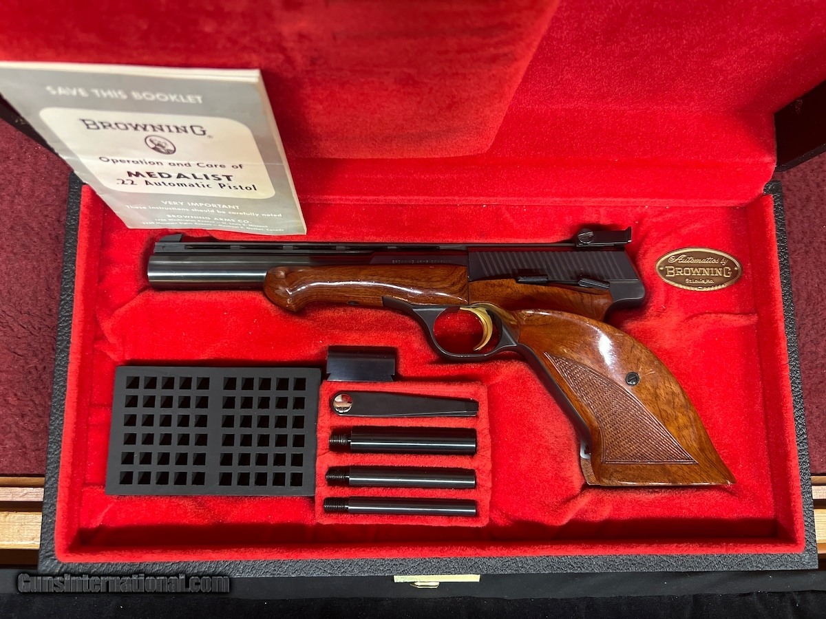 Description: Guns Listing ID: 797110 1964 Browning Medalist. .22lr. OEM case, tools and instruction manual. One magazine. SOLD Manufacturer: BROWNING Model: MEDALIST Caliber Info: .22 LR Condition: Used - Non-Certified Barrels: 7 BARREL Finish: BLUED |