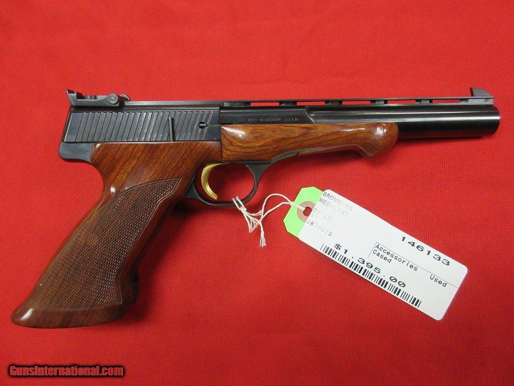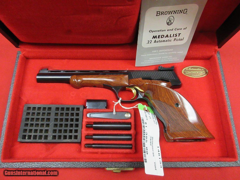 Description: Browning Medalist 22LR -- BLUE FINISHED WITH WALNUT CHECKERED GRIPS, FACTORY PRESENTATION CASE WITH COUNTER WEIGHTS AND AMMO BLOCK-This gun is appears to be factory original and remains in mint condition. SOLD |