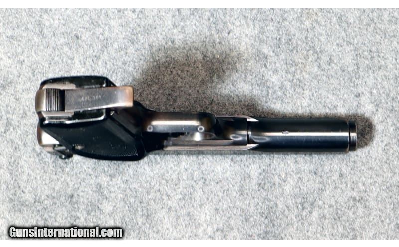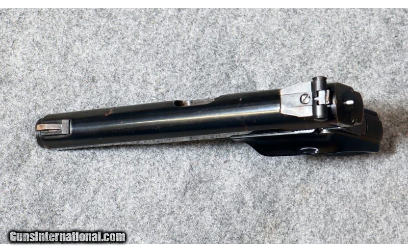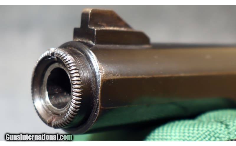 Description: This semi-auto pistol is a Browning model 71 chambered in .380 ACP. The firearm is in overall good condition and has wear on finish from being holstered. .380 ACP SOLD Chambers: 380 ACP Metal Condition: Bluing is worn off around muzzle and midway on slide and on edges Bore Condition: Bore is in good condition with strong rifling Barrels: 4" Barrel Triggers: Curved and serrated Stock Dimensions: 7" overall length Weight: 1.5 lbs. Sights: "Adjustable rear target sights, Front blade sight Item Location: Wichita, KS |