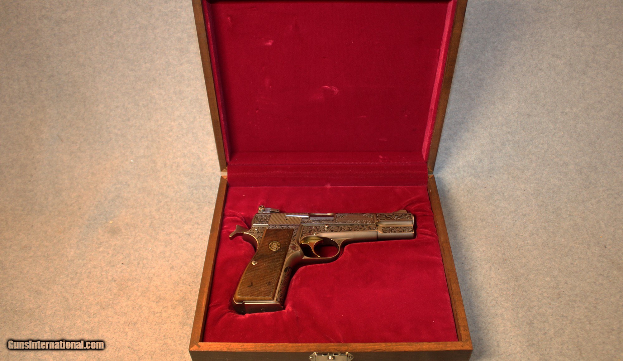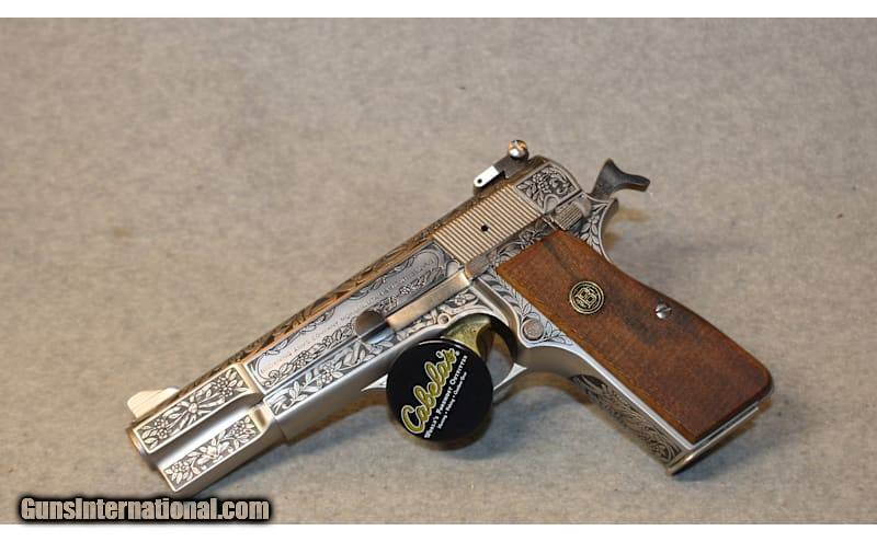 Description: This is a Fabrique Nationale Herstal, Browning pistol with a 4.75" barrel in 9mm. This is pistol is in pristine condition. The engraving is in remarkable condition with no sign of wear. It does come with a display box, as pictured. This piece of art would make a great addition to any collection. 9mm Luger SOLD Barrels: 4.5 inch Item Location: Hazelwood, MO |