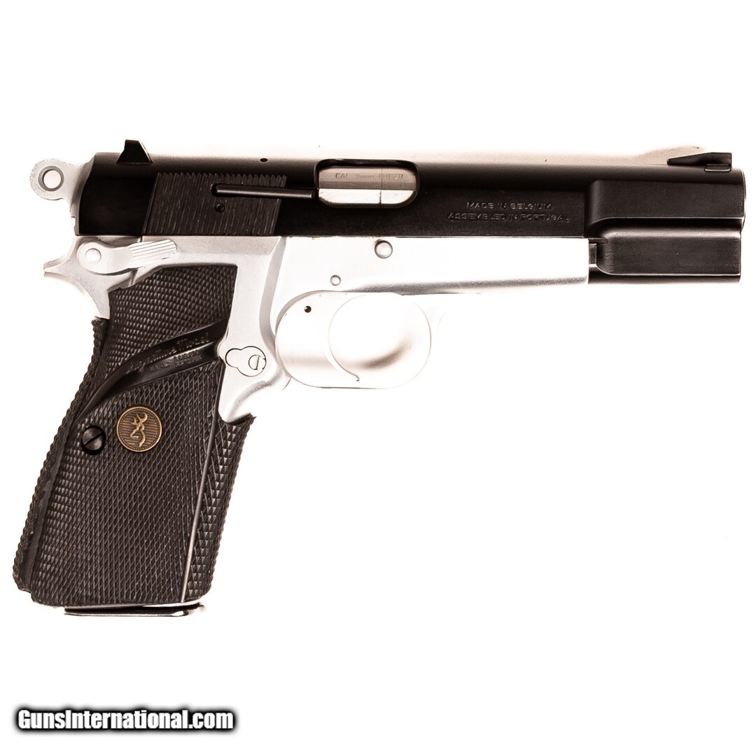 Description: Guns Listing ID: 674289 One of the most popular military pistols in history, the Hi-Power saw more than eight decades of production and was used by armed forces in more than 50 countries. It is based on a design by John Browning, although the design of the Hi-Power was not completed until several years after Browning’s death. This Hi-Power includes one 13-round magazine. Serial number: 245NW78056 Get the best bang for your buck when you get a Certified Used Firearm . When you see the Certified Used stamp on any of our firearms, you can be confident that you’re getting exactly what you want – a gun only in very good to excellent condition and held to the highest quality standard. All Certified Used Guns come with a ‘no questions asked’ return policy . PLUS, ALL CERTIFIED USED GUNS SHIP FREE! SOLD Manufacturer: BROWNING Model: Hi-Power Caliber Info: 9MM LUGER (9X19 PARA) Condition: Used - Certified Barrels: 4.6 barrel Finish: TWO-TONE |