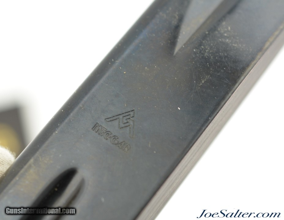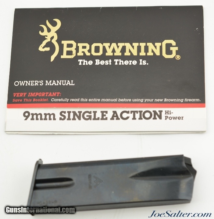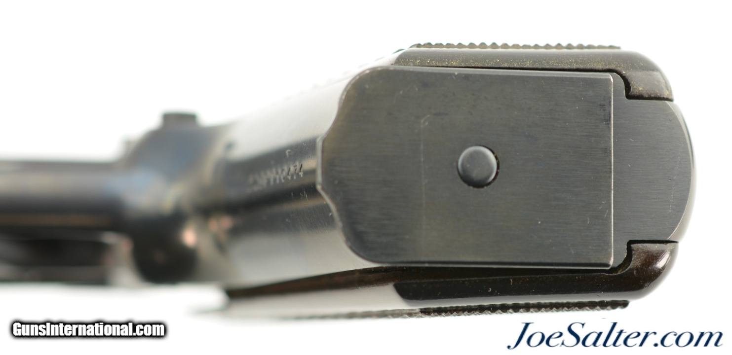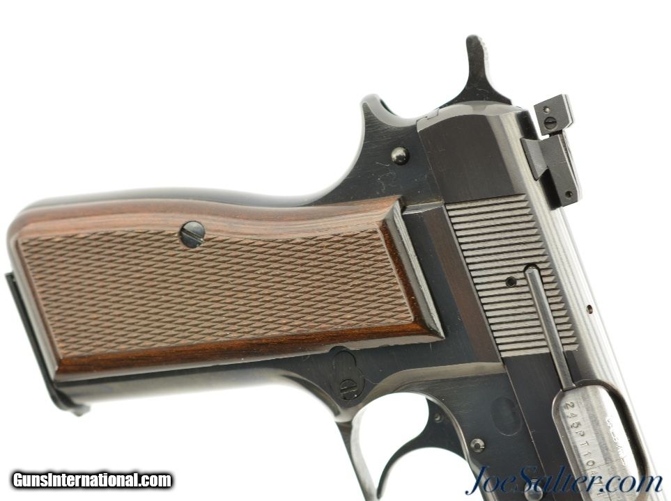 Description: Serial #245PT10474, 9mm Para., 4 3/4" barrel with an excellent, bright bore. This is an FN-made pistol (made in 1986) that features factory adjustable rear sight and high front sight blade. The pistol has seen minimal use, if any, and retains practically all of the original blue finish on the metal, while the checkered wooden grips are also in excellent shape with no handling marks nor any flattening of the points. The pistol is housed in its original numbered box with foam insert, owner’s manual, and two factory magazines. This is a fantastic Belgian High Power, and is in excellent, little-used condition. FFL; SOLD |