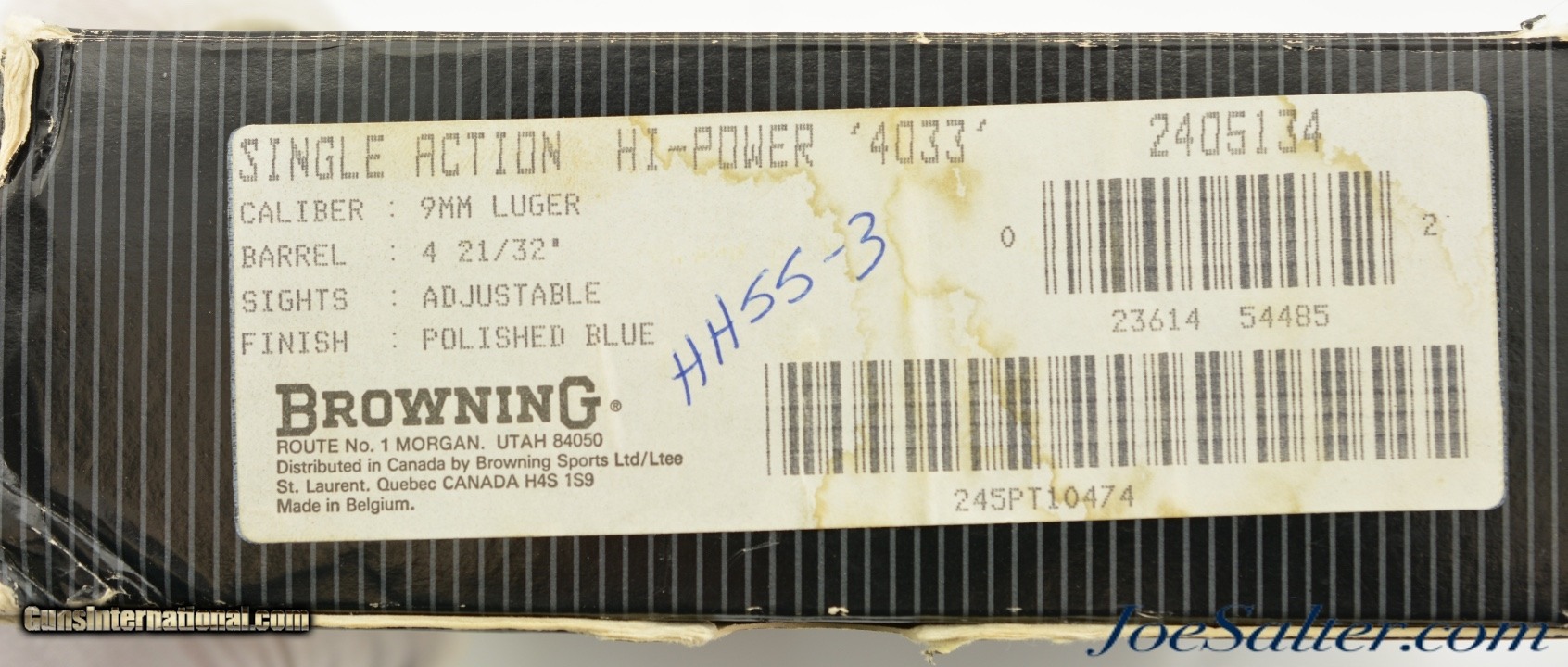 Excellent Belgian Browning Hi Power Pistol with Adjustable Sights and Box