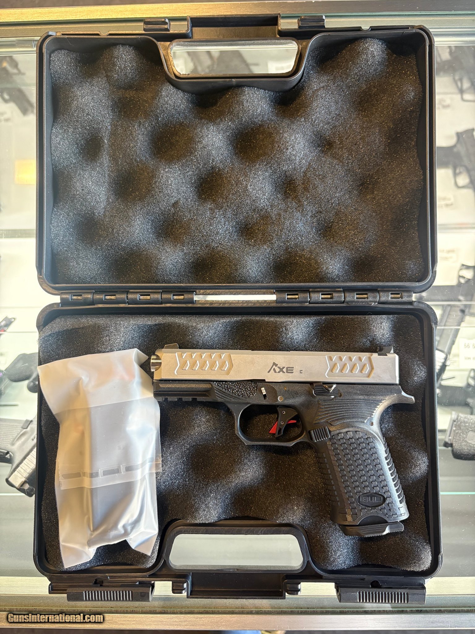 Description: Guns Listing ID: 610584 - LIKE NEW CONDITION (UNFIRED) - ORIGINAL BOX - TWO 15-RD MAGAZINES Manufacturer: BUL ARMORY Model: AXE C CLEAVER Caliber Info: 9MM LUGER (9x19 PARA) Condition: Used - Non-Certified Barrels: 4" BARREL Action: SEMI AUTOMATIC Finish: black and silver Price: $499.99 Contact Seller |