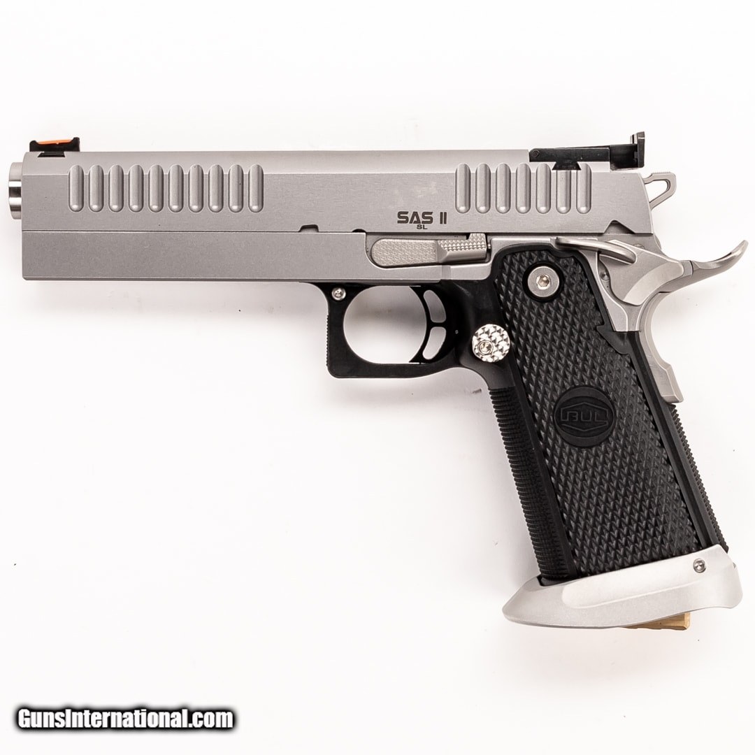 Description: Guns Listing ID: 365642 The SAS II SL is semi-automatic handgun that is hand built and custom fitted by the expert gunsmiths at Bul Armory. With a match grade barrel and exceptionally crisp trigger, this is a competition pistol through and through. 3-20 round magazines, the original case, manual, and 2 extra recoil springs are included. SOLD Manufacturer: BUL ARMORY Model: SAS II SL Caliber Info: 9MM LUGER Condition: Used - Certified Barrels: 5 BARREL Finish: STAINLESS |