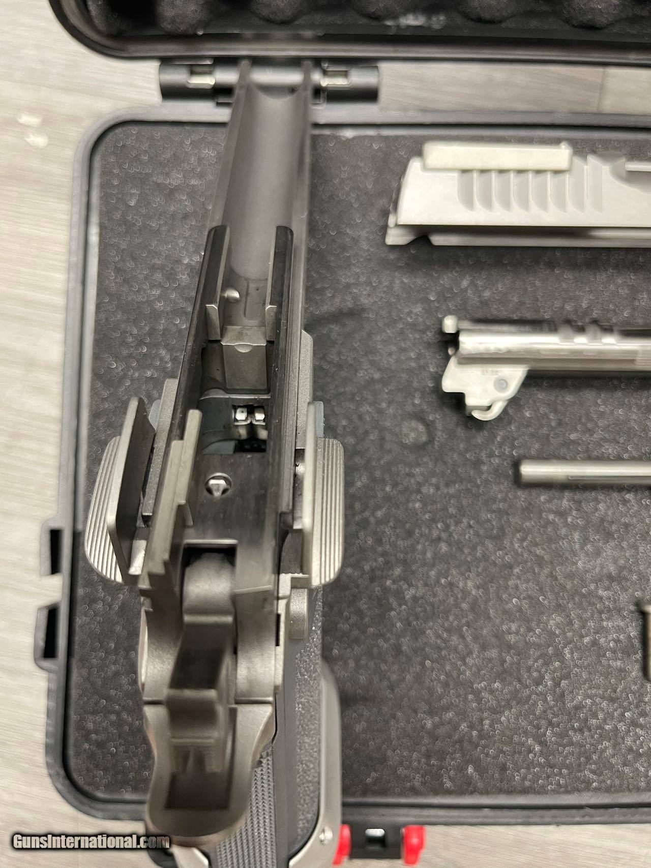 Description: Guns Listing ID: 1332813 BUL ARMORY SAS ll RADICAL 5.4 SILVER 9MM OPTIC READY (RMR FOOTPRINT) EXCELLENT CONDITION WITH ALL ORIGINAL BOX, FACTORY PARTS AND GIFTS NO OPTIC INCLUDE NO GRIP SAFETY RARELY SHOOT OFFICIAL INFO USA MSRP: $3090 Platform: SAS2 Caliber: 9mm Barrel: 5.4” Island weighted bull barrel Frame: Stainless steel Grip: Full Size Optic system: RMR Sights: Adjustable rear / Fiber optic front Capacity: 19+1 Trigger weight: 2.0-2.5lbs Finish: Silver (Natural finish) Weight (unloaded): 1138g / 40.2oz USPSA Compliant: Limited Optics & Limited Divisions IPSC Compliant: Standard Division What’s in the box: Magazines: 3 RMR adapter plate Guide rod takedown tool Recoil springs: 7lbs & 10lbs. Bore brush kit Owners manual Hard box case SOLD Manufacturer: BUL ARMORY Model: SAS ll RADICAL Caliber Info: 9MM LUGER (9X19 PARA) Condition: Used - Non-Certified Barrels: 5.4 BARREL Finish: SILVER |