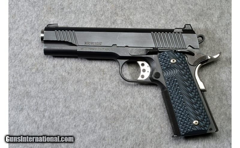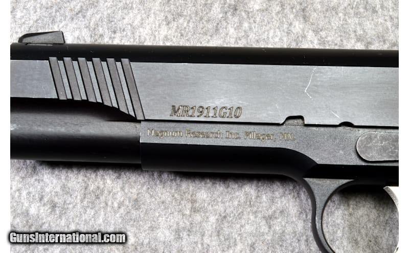Description: Magnum Research 1911G combines the style of the 1911 with the construction of a Desert Eagle. Comes chambered in 10mm with a 5" barrel. Features include an adjustable rear sight, G-10 grips, the Series 70 firing system, extended magazine release, manual and beavertail safeties, and an 8 round magazine. 10mm Auto SOLD Metal Condition: Very Good with light scratches and handling marks Wood Condition: Black / Gray G10 Grips Bore Condition: Bright and Shiny Barrels: 5 Triggers: SAO Weight: 2.65 lbs. Sights: Dovetail Front / Adj Rear Item Location: League City, TX |