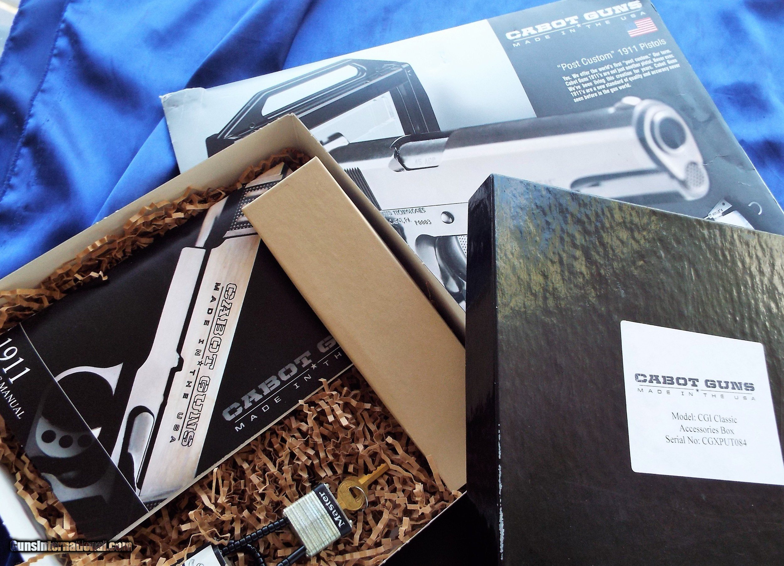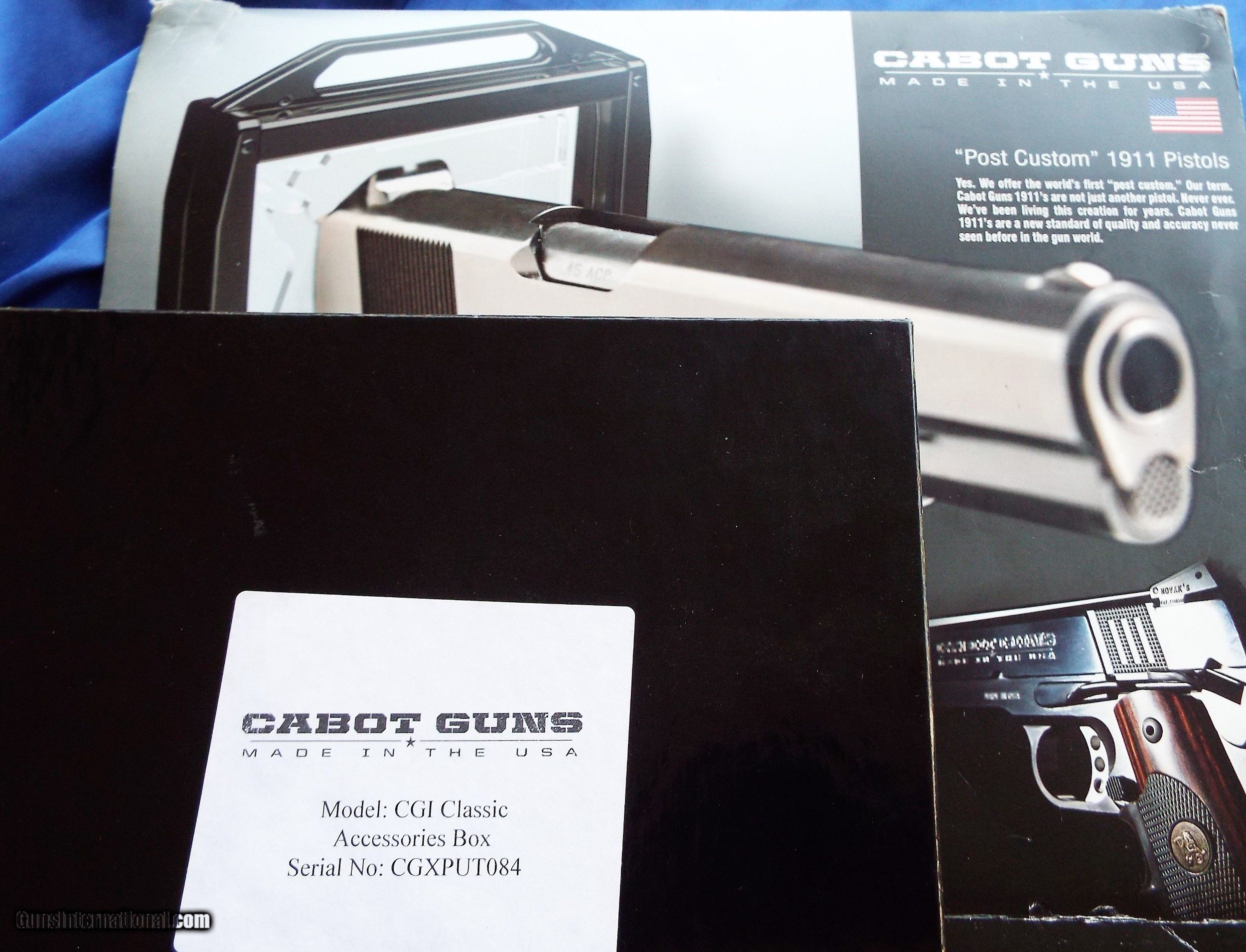 Description: CABOT ~ CGI / CLASSIC 5" 1911 CUSTOM 45 caliber in LOCKING CUSTOM PLEXIGLASS case **PRISTINE** "THE ROLLS ROYCE OF 45's" Description: The Cabot Guns CGI/Classic is a standard 5 inch barreled M1911-A1, based on John Moses Browning’s designs and blueprints for the original 1911. However, this pistol represents Cabot's contemporary interpretation of the M1911-A1. This is not a replica, nor was it intended to be. Purists will note several areas where this pistol departs from examples of Browning's designs and blueprints. Per Cabot Guns’site, the CGI/Classic has the following features: • 1911-A1 Styling • Polished Feed Ramp • Flared Ejection Port • 16.5 lb. Wolff recoil spring • Post-Custom Kart NM Grade Barrel • Semi-Polished Bright Bluing • Modern Aluminum Trigger • Standard GI Style Thumb Safety (RH) • Standard GI Style Slide Stop • Wicked Grips/Box Elder Grips • Chip McCormick Power Mag Magazine • Owner/User Manual • Barrel Bushing Wrench • Child Resistant Gun Lock~ Heavy Acrylic Custom fitted Lockable case. The 16.5 pound recoil spring is a Wolff variable rate spring. It speaks highly of Cabot Guns that they rely on Wolff springs in their line of 1911s. "Post-Custom" refers to the fact that Cabot Guns uses Kart National Match barrels, and these barrels are tuned and fitted by the Cabot Guns technicians to fit in their slides. Ray Rozic designed and built several tools to facilitate the fit of these Kart NM barrels in their pistols. The pistol design team at Cabot Guns made the decision to utilize Chip McCormick Power Mags with their line of guns. The sights on the CGI/Classic follow the tradition of the old Colt service pistols, in that the front sight is staked, while the rear sight is fit in a standard dove-tail. However, both sights are larger than the miniscule sights found on Government Models. Cabot Guns CGI/Classic Caliber: .45 Auto Overall Length: 8.63" (219.2 mm) Overall Height: 5.63" (143.0 mm) (w/magazine) Overall Width: 1.30" (33.0 mm) (across grips) Barrel Length: 5" (127.0 mm) Sights: Large GI-style (non-adjustable) Weight: 40 oz. (1.14 kg) (w/empty magazine) Magazine: Chip McCormick 8 round Power-Mag Finish: High polished Blue ~~~~~~~~~~~The pistol cases are custom built for Cabot Guns by Technoframes of Brescia, Italy. The case is based on Technoframes' "Blaze" model cases. This pistol case is constructed of acrylic resin (similar to Plexiglas), brushed black aluminum reinforced frame, with an inner layer of acrylic resin. This inner layer is cut-out for the pistol and one magazine. The case is double-hinged across the top (near the handle), and equipped with key-locks on both sides. When closed, the locks are automatic, and the key is necessary to open the case. The acrylic resin outer and inner layers are quite thick, and protect the pistol and magazine from hard knocks, as well as the elements. The pistol can be moved into an upright position in the case, due to a swiveling insert which fits in the magazine well of the pistol, and secures the gun in a manner exactly like the magazine retention system Unlike most other conventional Firearm Storage Systems on the market today, BLAZE is a multifunctional Gun Case that enables the secure storage, transportation and display of Firearms. Rapid access to the Handgun stored within is facilitated through dual sided opening and specially designed Dummy Mag, which can stands the gun up for display. This STUNNING Gun was previously owned, appears to have been hardly if ever shot, and is in PRISTINE CONDITION ! Please view all pictures as they are part of the description. PHOTOS DO NOT DO THIS GUN JUSTICE..DUE TO THE GUN & CASE BEING HIGHLY REFLECTIVE! Retail $4950 This gun has 2 boxes, one with accessories .. lock..barrel wrench...manual , the other larger one has the gun & case, which needs to be shipped to your local FFL dealer (very heavy!) Shipping is to be determined by your dealers location & insurance. Please call Erica / Self Defense Inc.772-349-0334 (Florida) for purchase or any questions. SOLD Manufacturer: CABOT Model: CGI /CLASSIC Serial Number: CGXPUT084 Barrel Length: 5 Caliber Info: 45ACP Bore: CLEAN Condition: EXCELLENT Metal Condition: EXCELLENT Wood Condition: EXCELLENT Bore Condition: EXCELLENT Action: SEMI-AUTO Finish: BLUE Weight: 40 oz. Sights: FIXED Case: PLEXI LOCK BOX Item Location: FL |