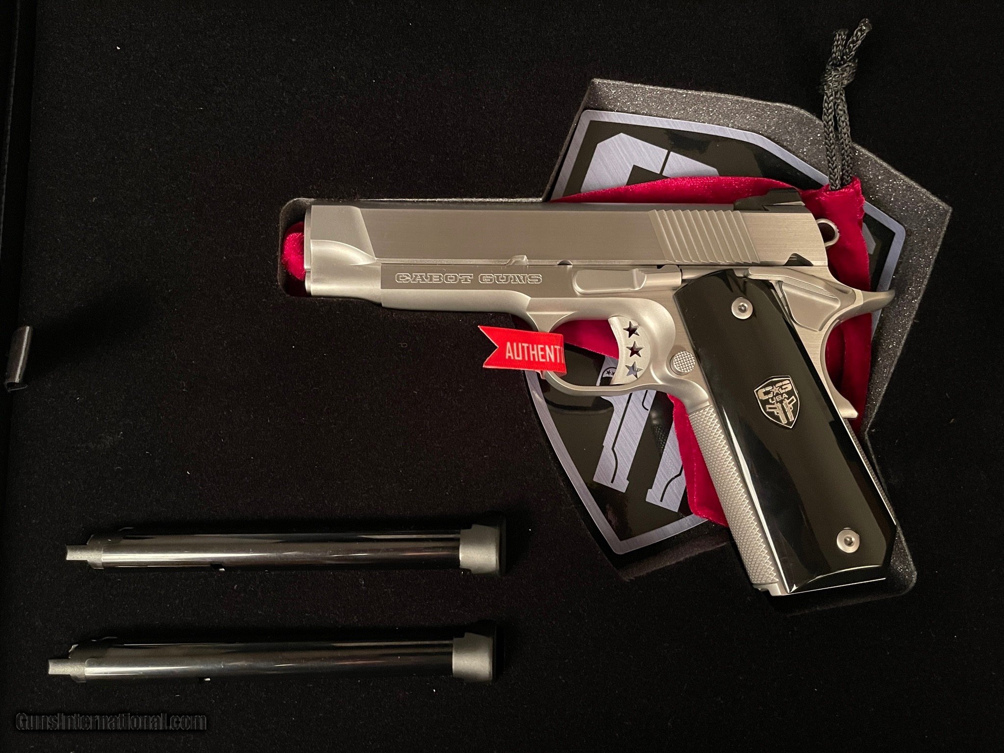 Description: For the discerning enthusiast, no collection of precision firearms is quite complete without the quintessential carry. Yet certainly, no ordinary carry will do. That’s why we’re proud to introduce The Gentleman’s Carry with full-cycle technology. A meticulously crafted pistol steeped in our long-standing tradition of creating the finest, most luxurious firearms the world has ever seen. From its checkered walnut grip adorned with the unmistakable Cabot Medallion, to its elegant, all-black matte finish, our Gentleman’s Carry achieves the perfect balance of classic beauty and modern design in a precision 1911 carry for today’s modern gentleman. Constructed from a foundation of USA Sourced Billet 416 Stainless Steel and featuring a Bobtail Cut Frame, tritium front and rear sights, a hand polished feed ramp, and a 4.25 inch flushed and recessed crowned barrel with Cabot barrel bushing, this masterfully crafted carry gun with full-cycle technology provides the benefits of a full-size pistol in a small, beautifully created package.