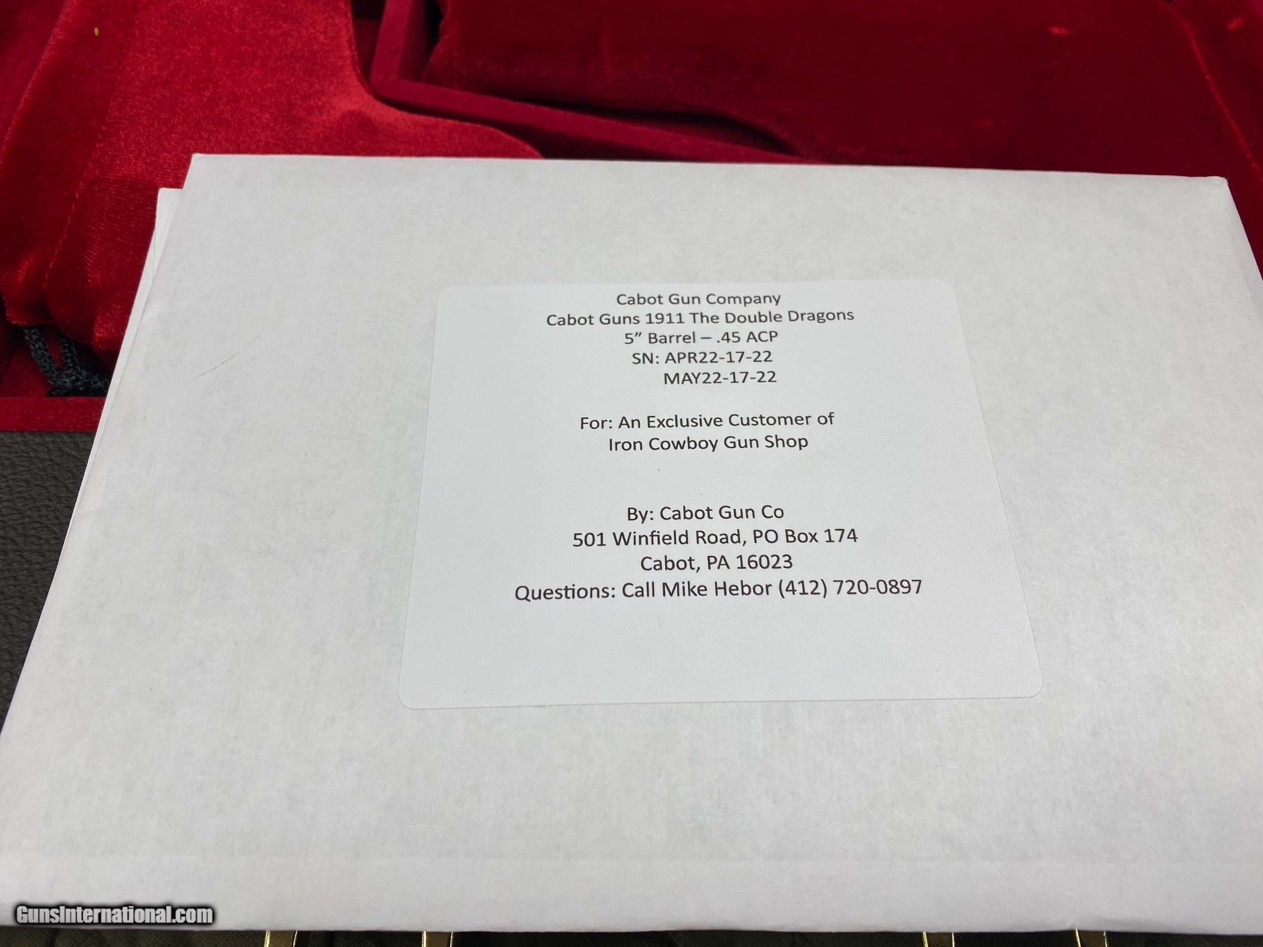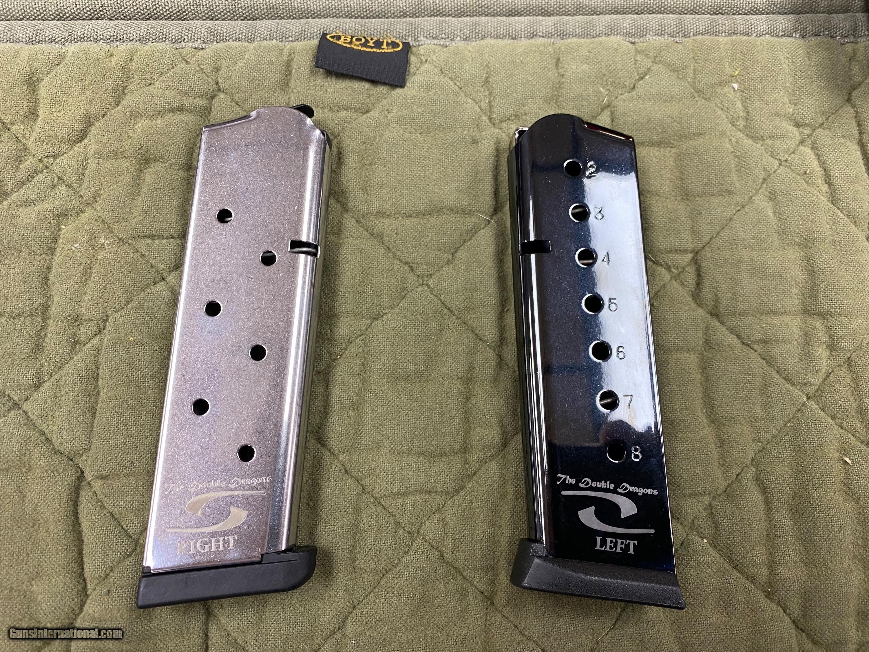 Description: Up for sale we have something very special. This is the April & May offering in the Cabot Guns 2022 GOTM Club. The Double Dragons Throughout history, Dragons have been portrayed as both good and evil. In the far eastern mythologies, Dragons were beneficent creatures that had an air of prestige around them that went so far as to make them the symbol of the Chinese imperial family for centuries. While in the West, these same behemoths were nearly always depicted as masters of destruction, darkness and sin. It is in this vein, we are producing the first mirror image set of pistols ever for Gun of the Month, The Double Dragons. This left and right handed set of our iconic Drakko Garra’s are adorned with TiMascus Grips and triggers as well Sapphire tipped pins and slide stops to make this pair of 1911s cool enough to satisfy the good and evil in all of us. WHY IRON COWBOY? Buying a fine gun is not shopping cart transaction. Buying from Iron Cowboy means buying a gun from me. It means buying from someone as passionate as you about fine guns. I want you to get the right gun both for you and your application, and my advice reflects what I feel is in your best interests. No clerks, no ‘other’ salesman – just me. Odds are we will have a discussion on my shooting experience with the gun you are after, and every transaction gets my personal best. Thank you, as always, for looking. Credit cards are welcome; however, a 3% fee will apply GROWTH THROUGH SERVICE Everyone is a customer at some point. I’ve taken the good from my experiences and apply it to my transactions. I’ve taken the bad and sworn to never pass that same experience on to my customers. I strive to act the way I would respect someone else for acting. In this way, Iron Cowboy differentiates itself with growth through service and repeat business. It’s my commitment to you, my customer. Iron Cowboy Gun Shop, LLC Edward Kondraski III (570) 733-2042 SOLD Handgun Caliber: .45 ACP (.45 Auto) |