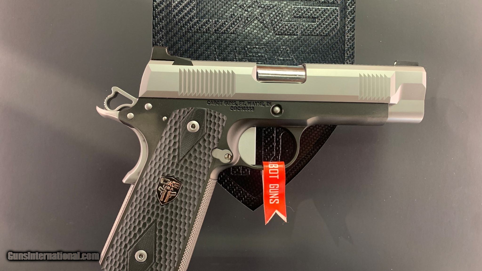 Description: Guns Listing ID: 396971 **New** Cabot Guns Rebellion 45 ACP with black box SOLD Manufacturer: CABOT GUNS Model: REBELLION Caliber Info: 45 ACP Condition: Used - Non-Certified Barrels: 5 BARREL Finish: GRAY/BLACK METALLIC |