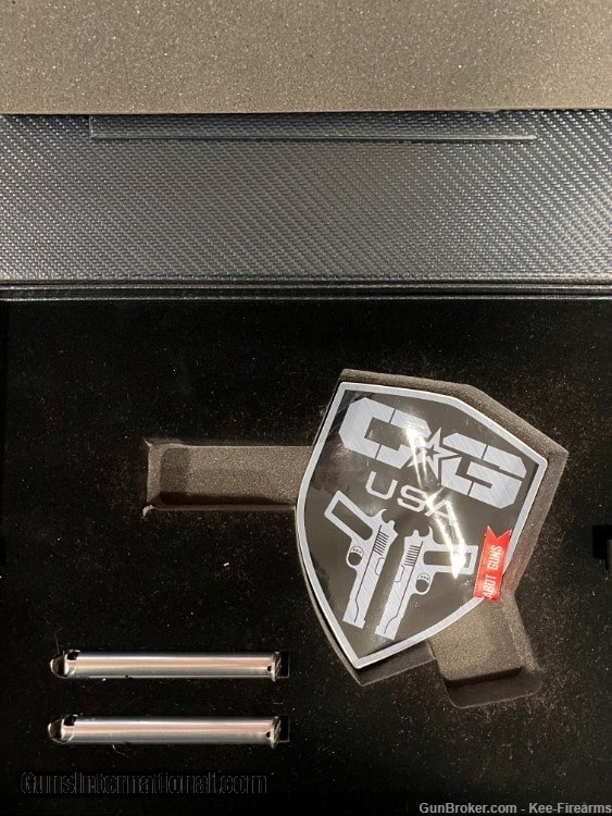Description: Guns Listing ID: 705486 This is a Used Firearm The Firearm has not been fired by the customer. There are a few scratches in the slid see pictures This listing is for a Cabot Gun Company S100 1911 5” .45ACP Pistol Limited Edition Duo-Tone Black DLC/ Polished Stainless with Black Piano Lacquer grips and Blue Niter Hardware. Modern 1911 styling Cabot Frame and Slide constructed from 416 Stainless Steel Billet Proprietary Hardening Matte Finish 5 in. Stainless Steel Match Grade Barrel, Hand-Fit, Crown Cut, Flush Fit Polished Feed Ramp Cabot Trinity Stripes Rear Slide Serrations Top Slide Serrations Lowered and Flared Ejection Port Cabot Aluminum Tristar Trigger Rhombus Cut Front Strap Checkering 24 LPI Rhombus Checkered Billet Made Main Spring Housing Cabot Panzerstahl Perfect Fit Ejector Cabot Billet One Piece Full Length Guide Rod Billet Thumb Safety Billet – Idiot Scratch Proof – Slide Stop Billet Magazine Release Billet Beaver Tail Grip Safety Cabot 9-Axis Billet Constructed Barrel Bushing Cabot Reverse Dovetail Front Sight – White Dot Optional Gold Dot or Tritium available Low Mount Fixed Rear Black Sight, Optional Tritium Bar available Optional Low Mount Adjustable Rear Sight, Black or Tritium Bar Beveled Magazine Well Two 8 Round Magazines Cabot Bushing Wrench and Gun Lock SOLD Manufacturer: CABOT GUNS Model: S100 Linmited Edition Du0-Tone Caliber Info: .45 ACP Condition: Used - Non-Certified Barrels: 5 BARREL Finish: DLC |