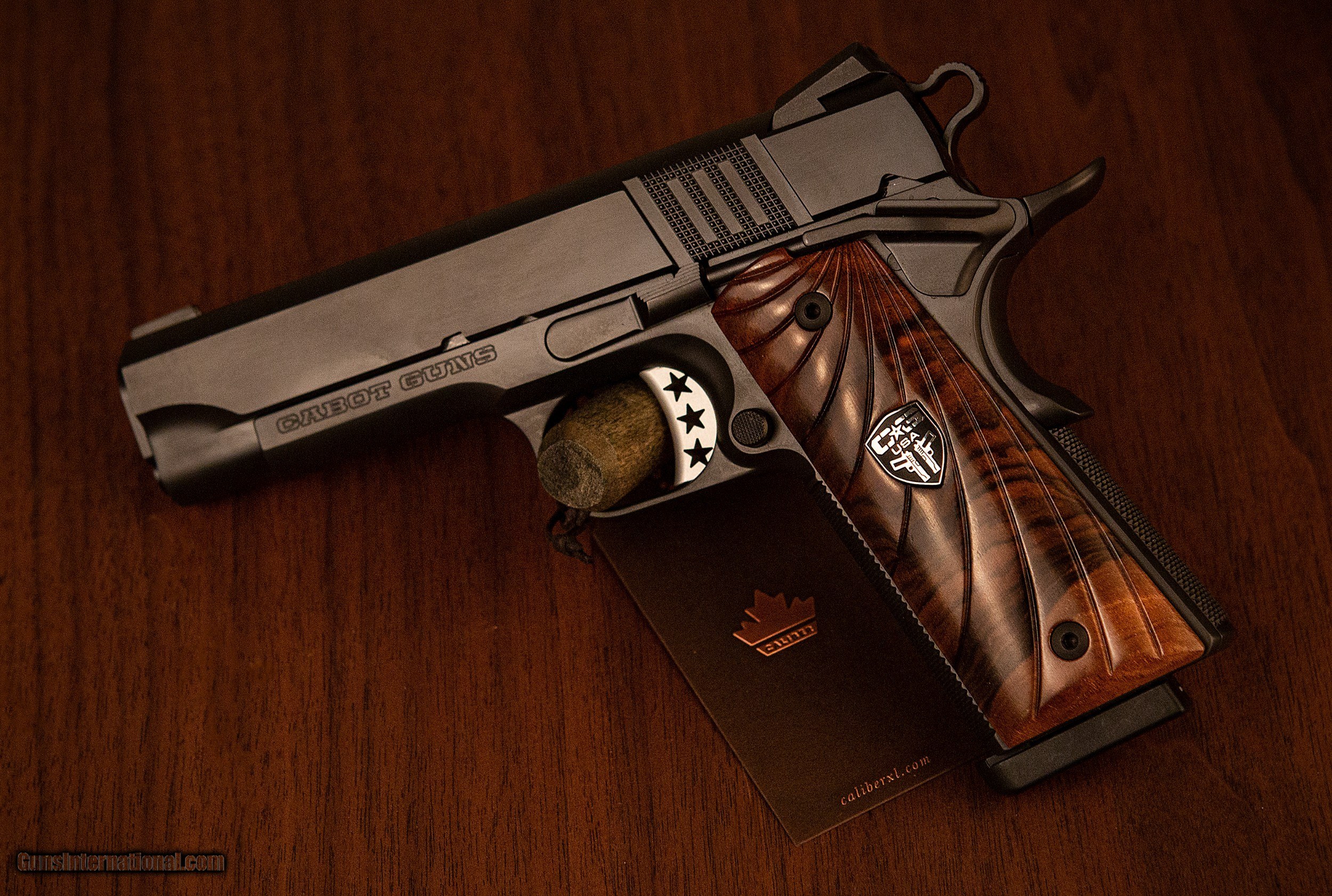 Description: Don't want to wait until 2022? We've got a new Cabot S103 Commander 1911 45ACP 4.25" Reverse Crown Barrel, Night Sights w/ Reverse Dovetail Front Sight, High Figure Walnut Fibonacci Grips, Cabot Black Nitride Thermal Metal Treatment SOLD Handgun Caliber: .45 ACP (.45 Auto) |