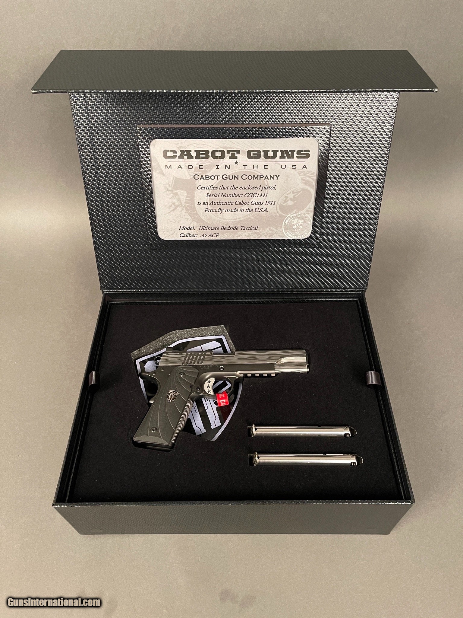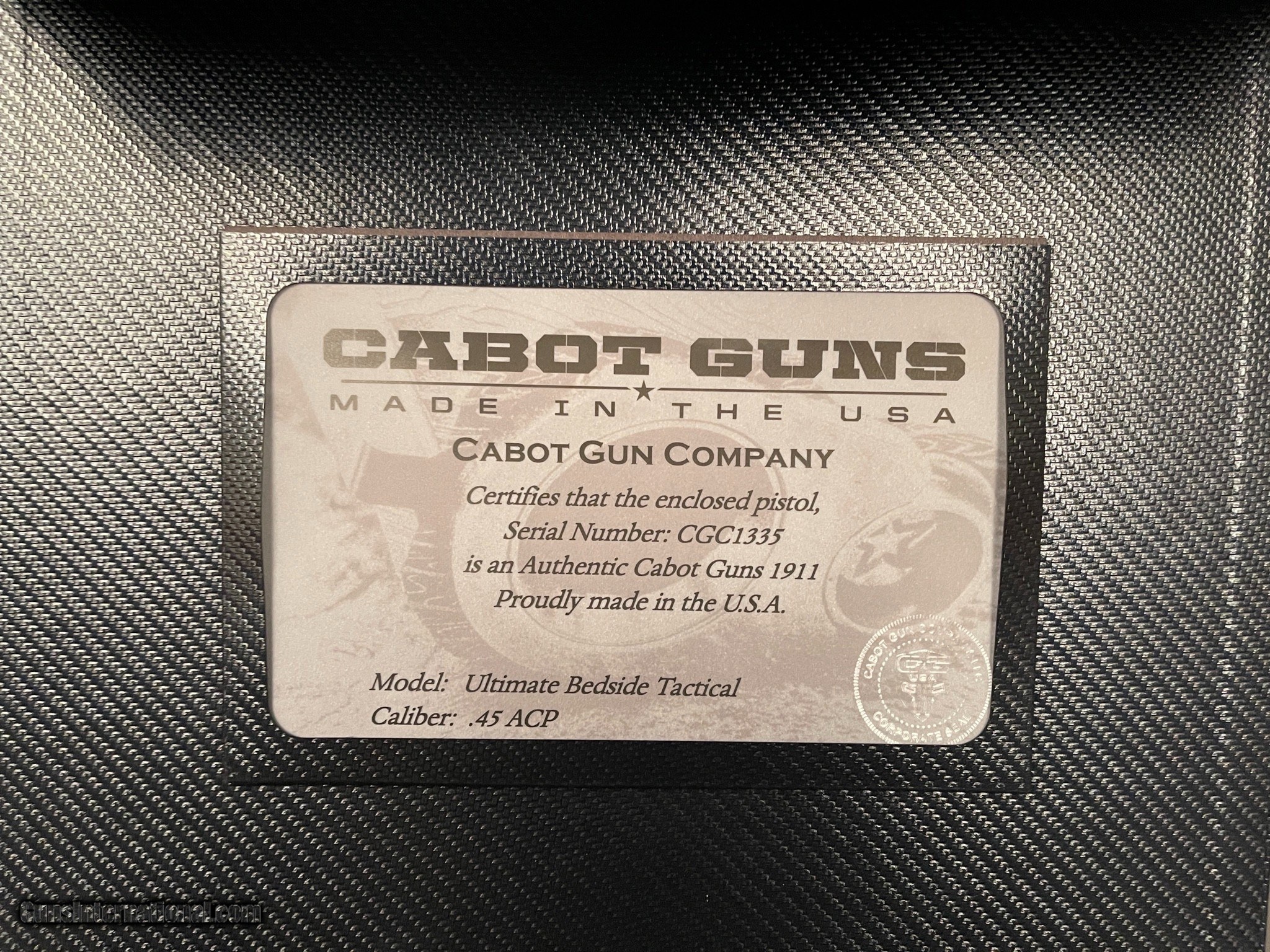 Description: Cabot’s Ultimate Bedside Tactical 1911 moves in to dominate a niche role. Where other pistols focus on being your ideal daily carry, range, or competition – the Ultimate Bedside sets out to first and foremost be the best at one thing, protecting you in the black of night. It’ll excel no matter where it’s taken; but true to its nocturnal appearance it rules the darkness. Your daily protection is vitally important, and so too is the choice of tool which stands ready beside you through the night.