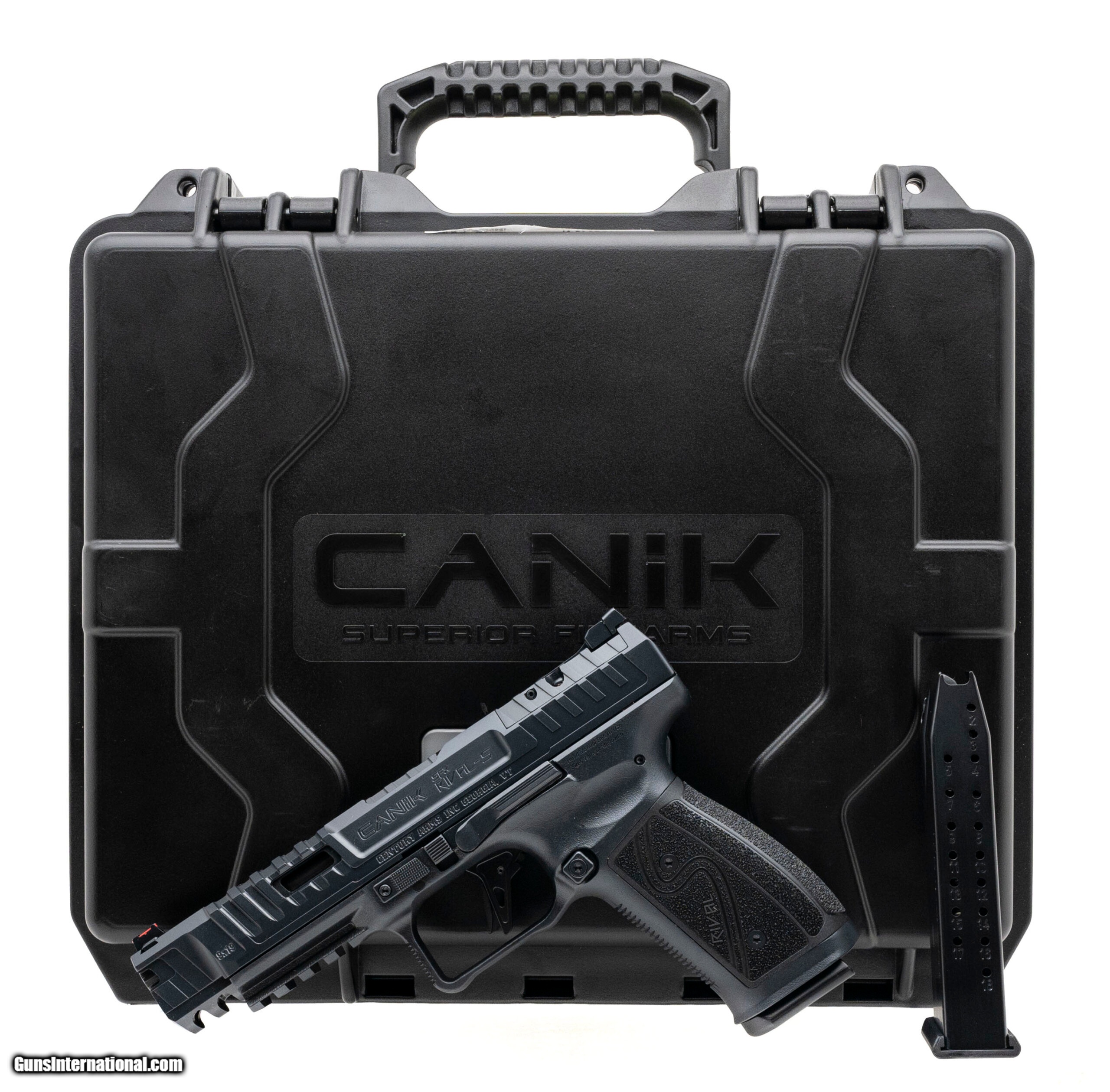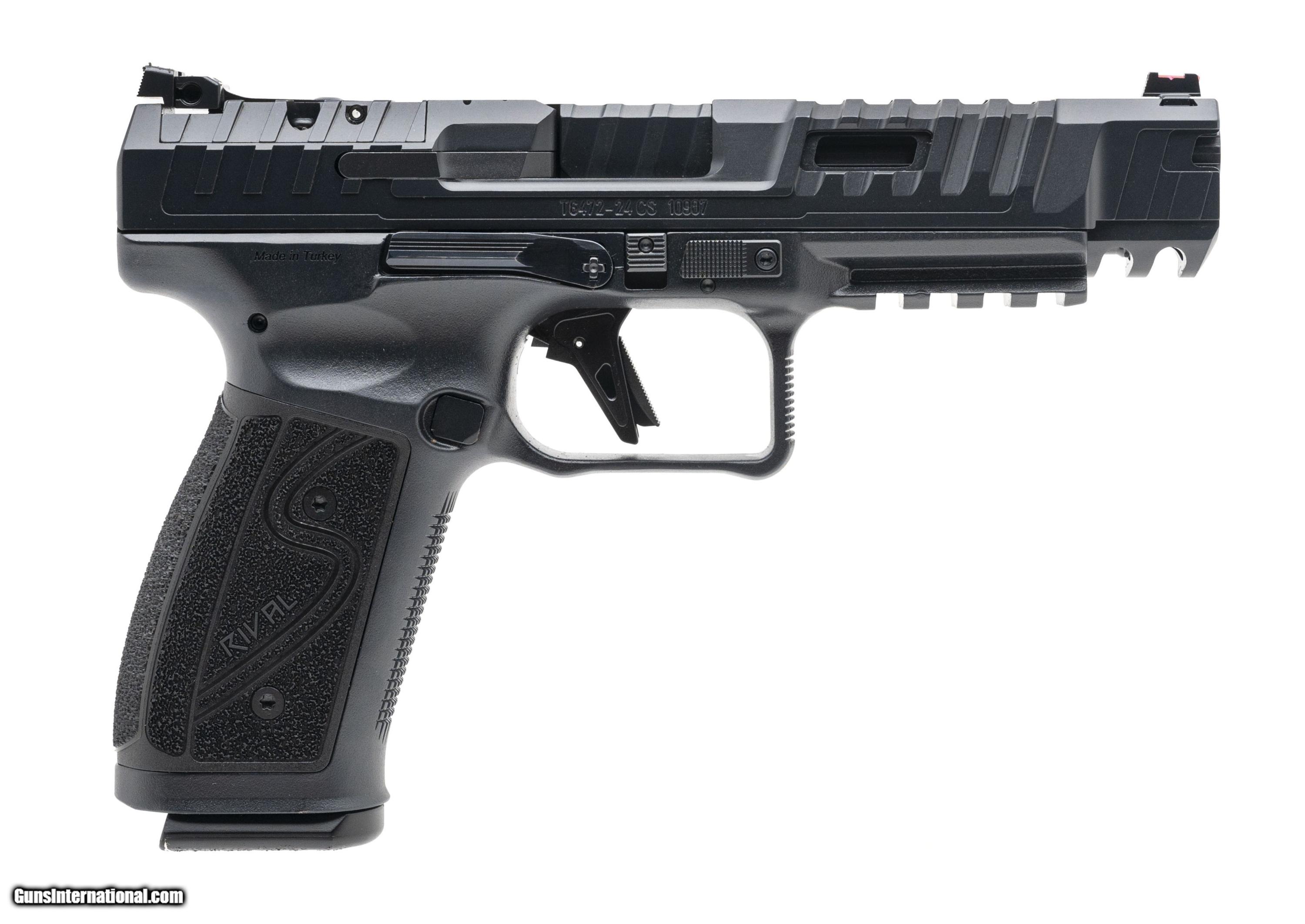 Description: "Canik SFX Rival-S Darkside Pistol. 9mm with a 5"" barrel. Striker fired full size steel frame pistol with an fiber optic front sight, matte black finish, and optic ready slide. New. UPC: 787450848481 (STOCK PHOTO) SOLD |