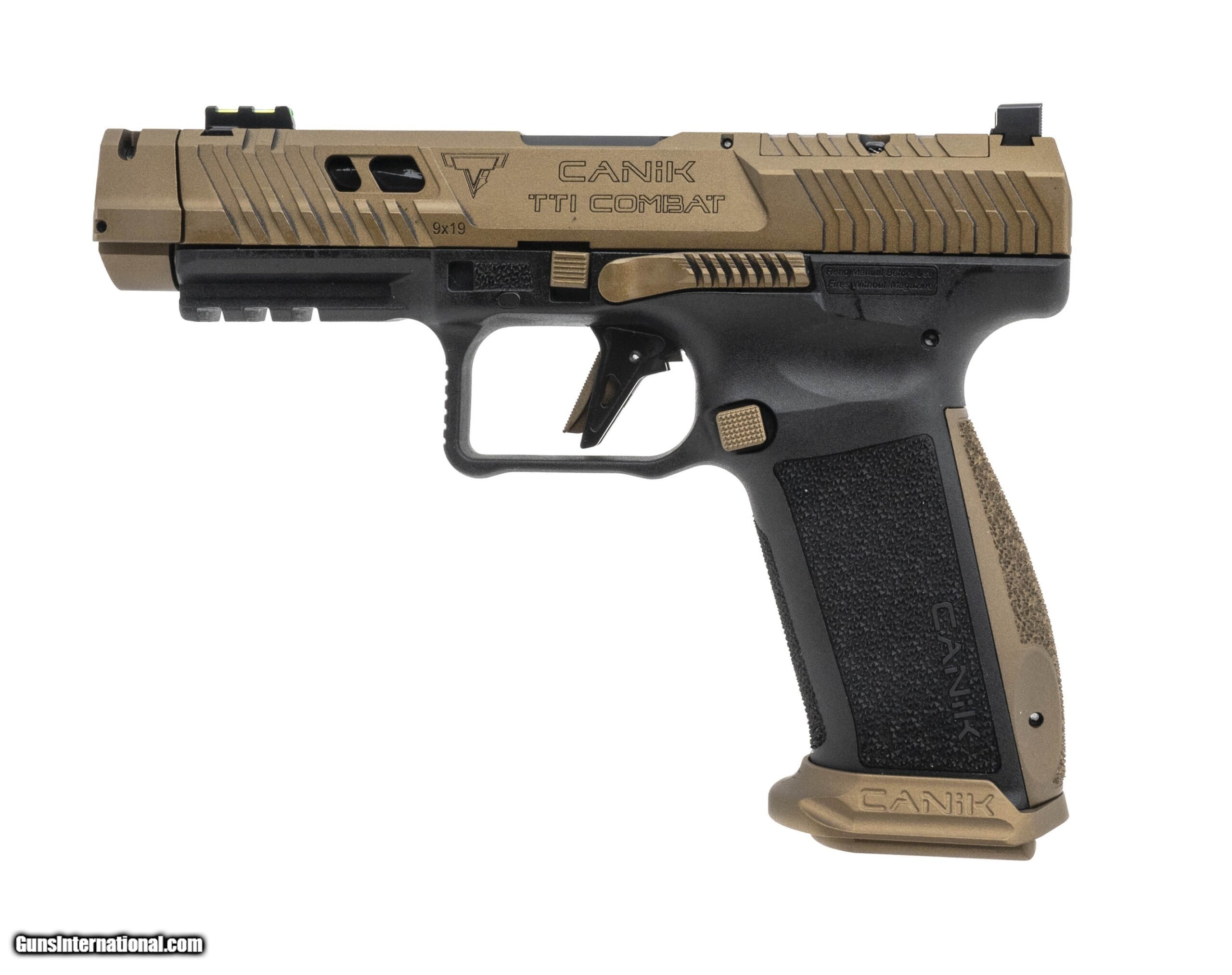 Description: "Canik TTI Combat Pistol. 9mm with a 4.6"" spiral fluted barrel. Semi-automatic pistol with a polymer frame and Taran Tactical Innovations bronze finish. New. UPC: 787450911321 (STOCK PHOTO) SOLD |