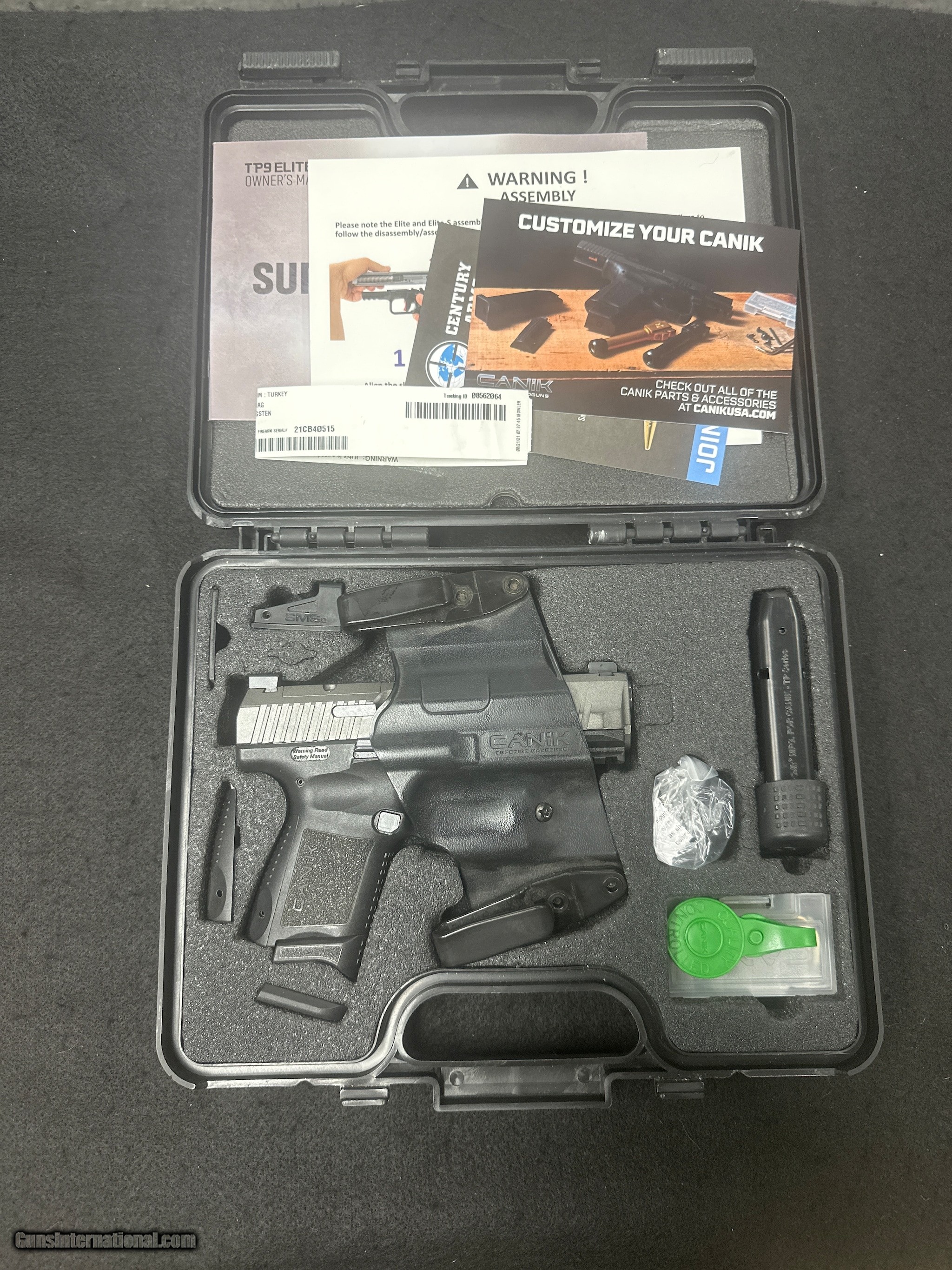 Description: Guns Listing ID: 1123174 Up for sale is this preowned Canik TP9 Elite SC 9mm handgun. This item is in excellent overall condition and comes with the original box, holster, 2 mags, grips, and manuals. This item ships as pictured within one business day of your payment! Thank you for viewing our listing. SOLD Manufacturer: CANIK Model: CANIK TP9 ELITE SC Caliber Info: 9MM LUGER (9X19 PARA) Condition: Used - Non-Certified Barrels: 4 BARREL Finish: BLACK & STAINLESS |