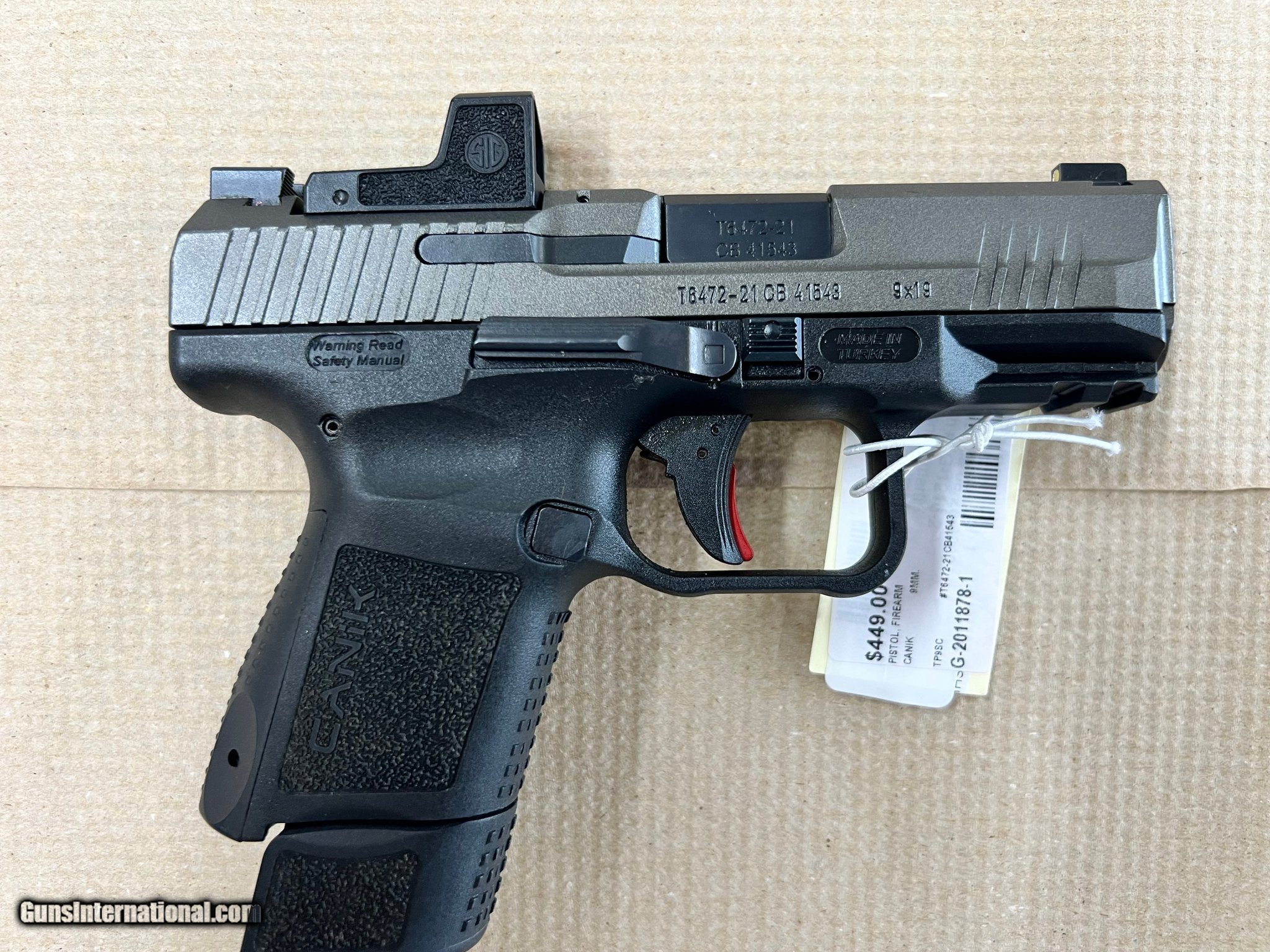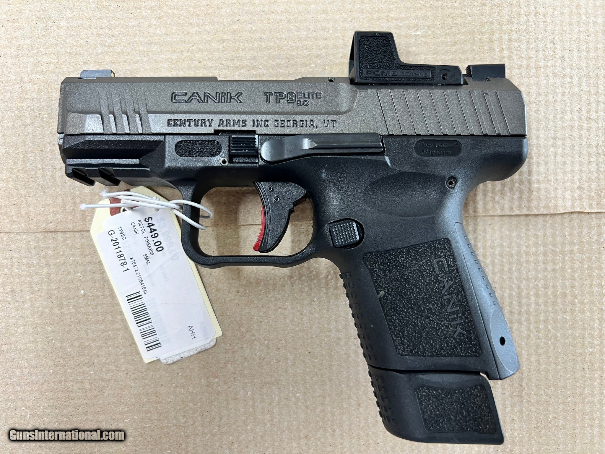 Description: Guns Listing ID: 1312929 BEAUTIFULL CONCEALED CANIK WITH OPTICS. Make: Canik Model: TP9 Elite Caliber: 9mm Capacity: 15 Barrel Length: 3.6\ SOLD Manufacturer: CANIK Model: CANIK TP9 ELITE SC Caliber Info: 9MM LUGER (9X19 PARA) Condition: Used - Non-Certified Barrels: 3.5 BARREL Finish: BLACK & GREY |